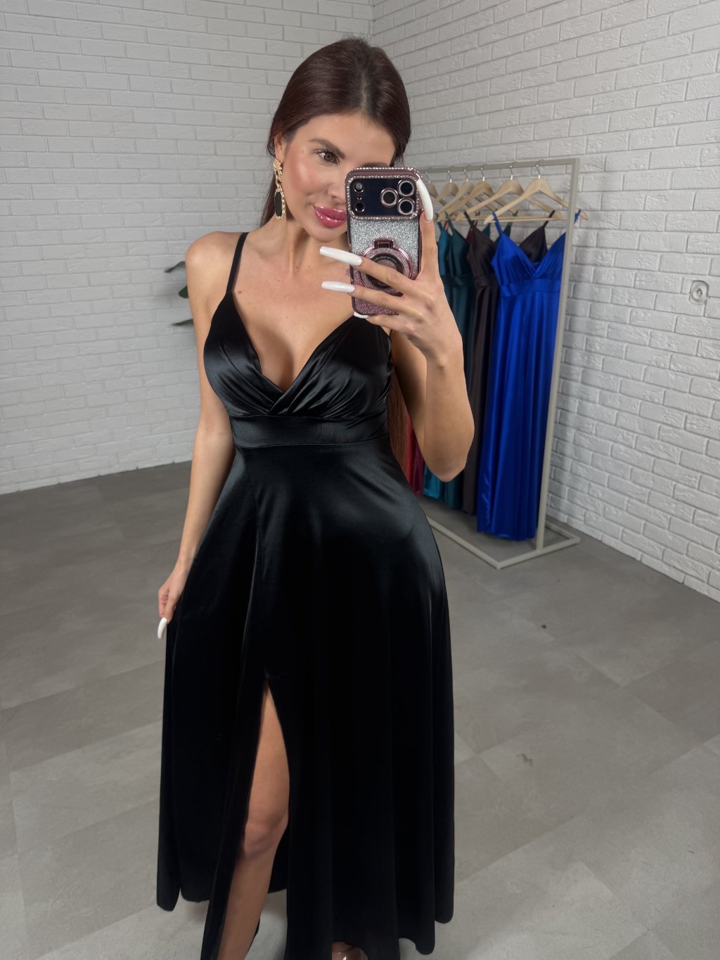 Spoločenské šaty FLORENTÍNA sú ušité z kvalitného saténu v padavom strihu. Sú bohaté na materiál. Horná časť je vystužená v oblasti pŕs, vďaka čomu šaty pekne držia tvar, pričom vzadu je skrytý zips. Sadnú od XS po M a sú vhodné po 180 cm. Ramienka sú regulovateľné.
