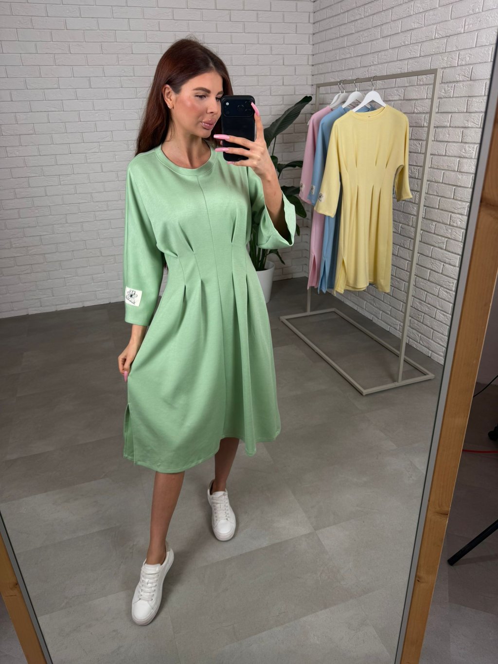 Šaty HUGO sú ušité z hrubšieho materiálu, ktorý si drží tvar a vďaka tomu pôsobí upravene aj po celom dni. Midi dĺžka tesne pod kolená je veľmi nositeľná a funguje skvelo na nižšej aj vyššej postave. Najvýraznejším detailom je prekladaný prvok v páse, ktorý opticky vytvaruje postavu, spraví užší pás a zároveň nechá pohodlie tam, kde ho potrebuješ, takže šaty sedia príjemne aj v období tehotenského bruška. Trojštvrťový rukáv pôsobí prakticky a elegantne a na ľavom rukáve nájdeš bielu nášivku, ktorá šatám dodá moderný, nenútený detail. HUGO sú ideálne na dni, keď chceš pôsobiť upravene, stačí obuť tenisky, čižmy alebo lodičky a outfit funguje. Veľkostne sedia od S po XL.