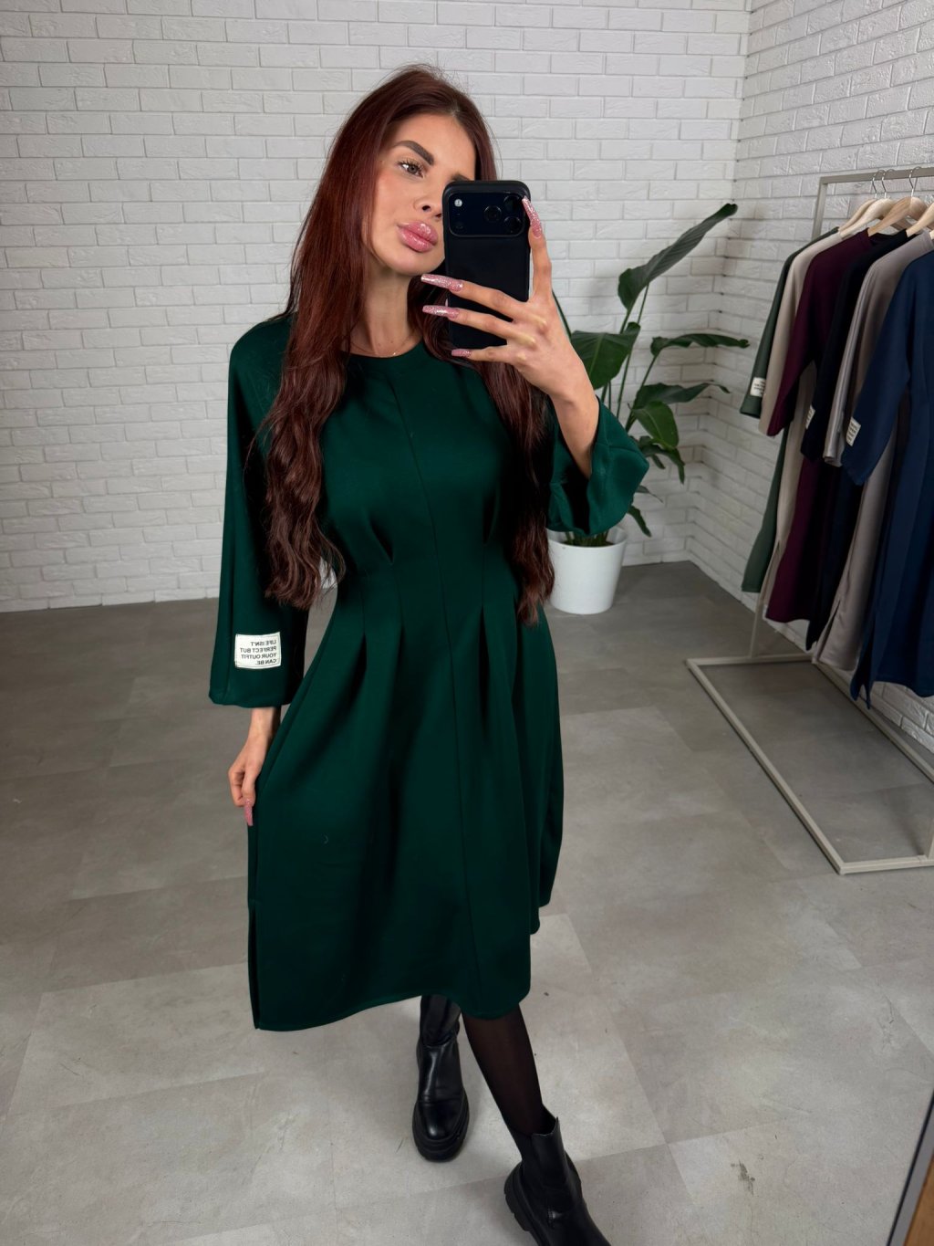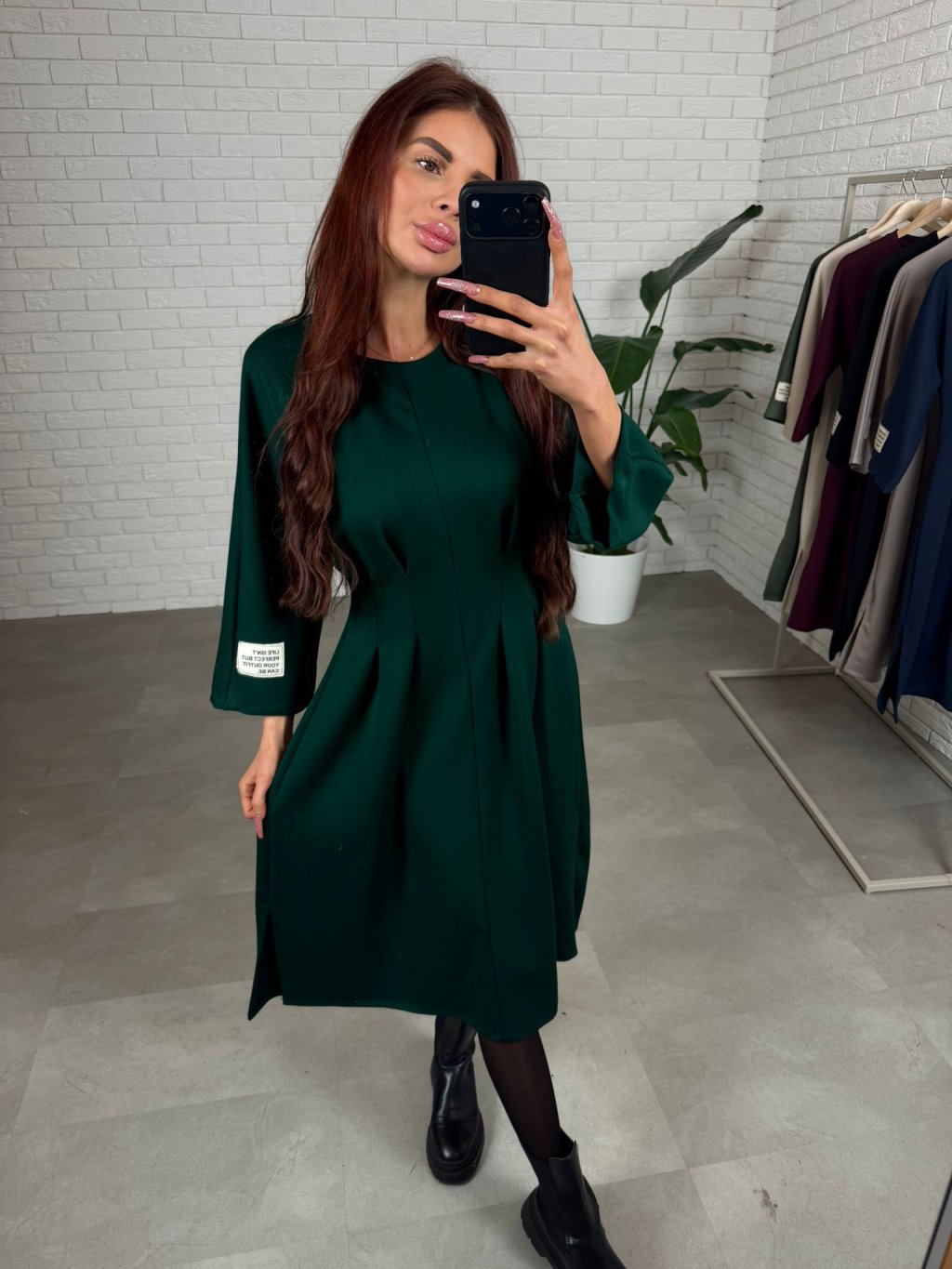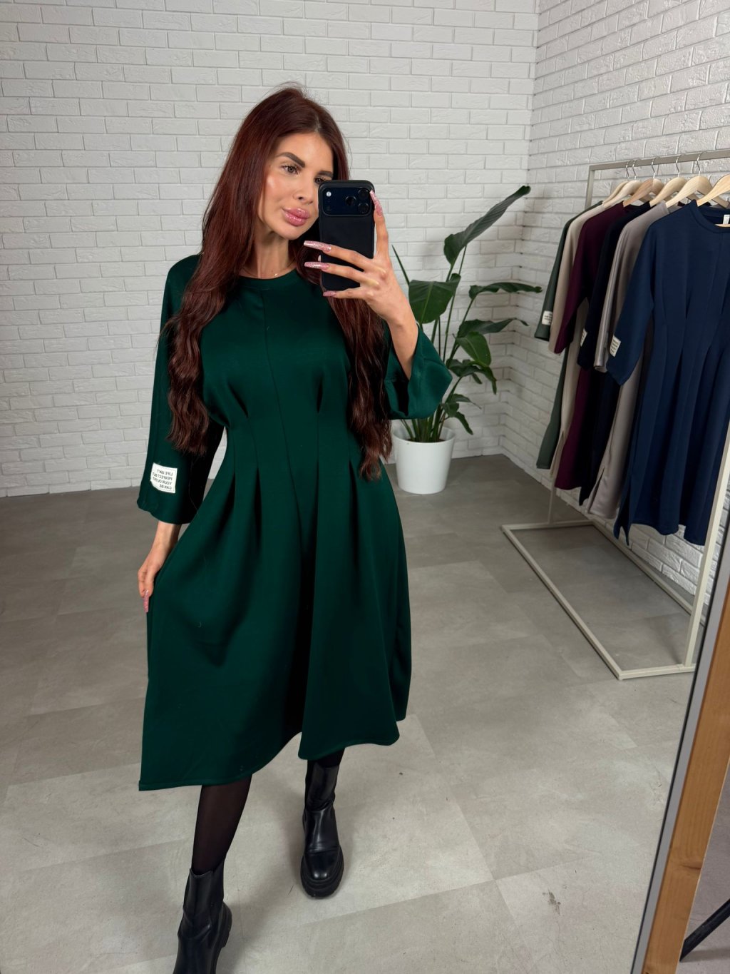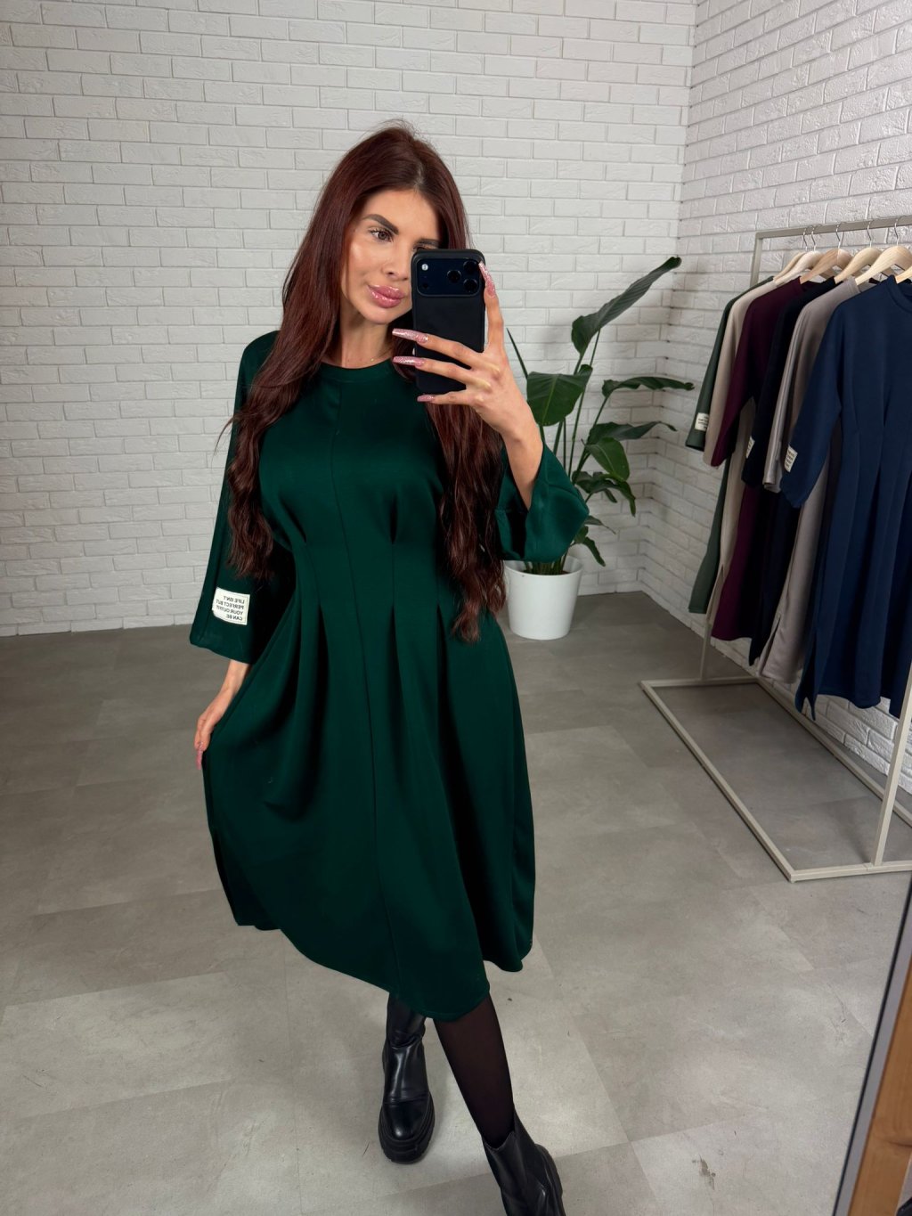 Šaty HUGO v midi dĺžke sadnú od S po XL. Dĺžka tesne pod kolená. Vhodné na nižšie aj vyššie postavy. V páse tvarujúci prekladaný prvok , ktorý opticky vytvaruje postavu a vytvorí užší pás. Trojštvrťový rukáv. Na ľavom rukáve nášivka bielej farby. Sadnú aj na tehotenské bruško. Šaty sú z hrubšieho materiálu , ktorý si drží svoj tvar.