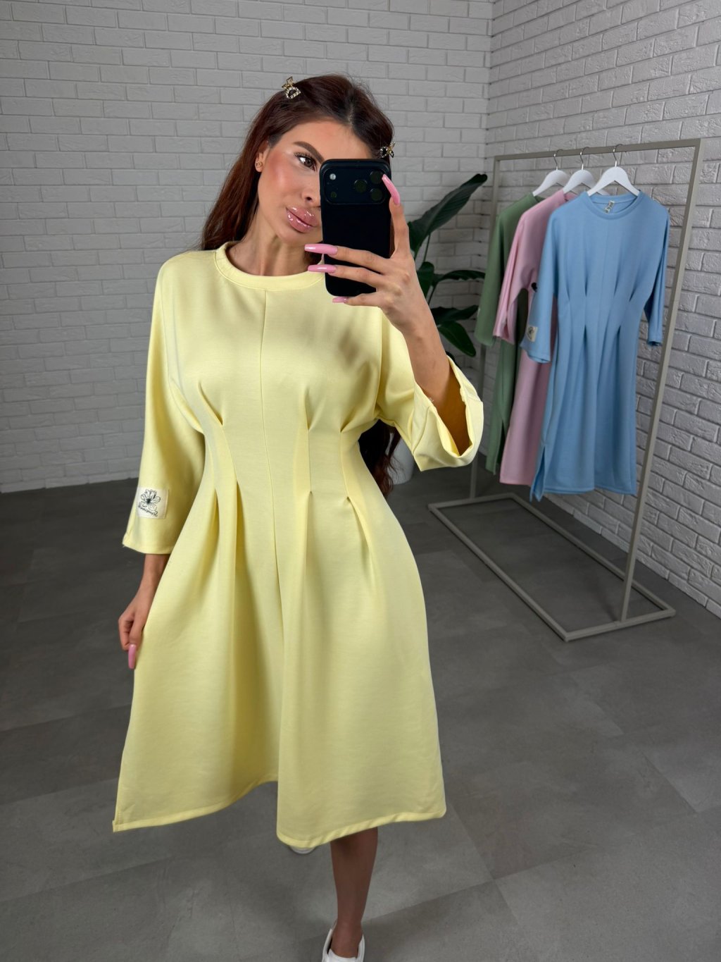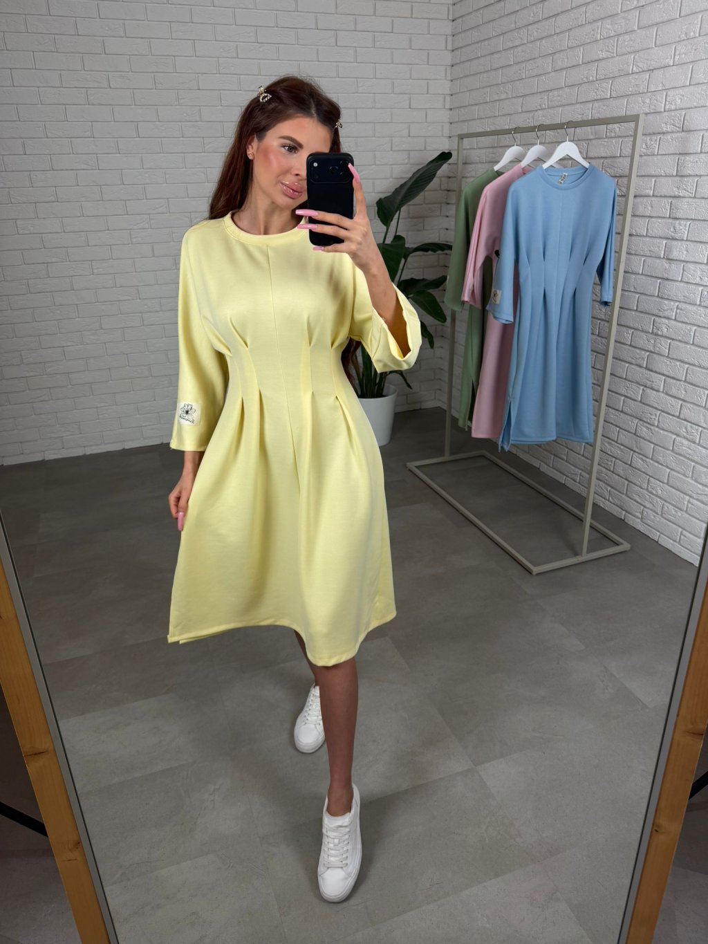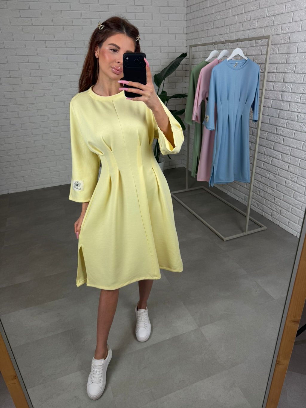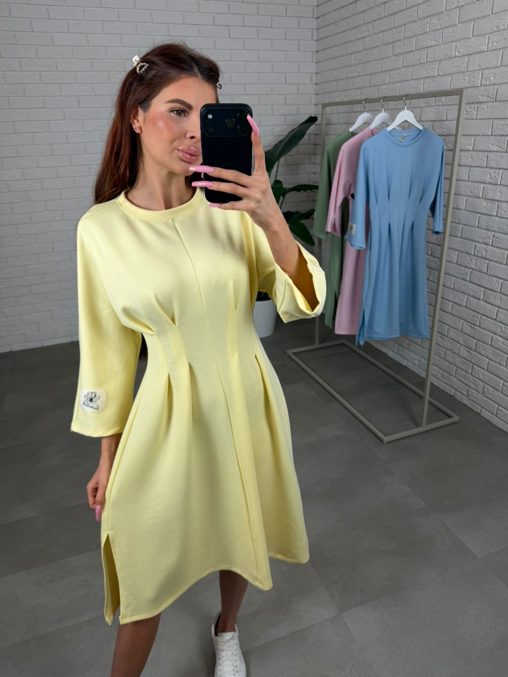 Šaty HUGO sú ušité z hrubšieho materiálu, ktorý si drží tvar a vďaka tomu pôsobí upravene aj po celom dni. Midi dĺžka tesne pod kolená je veľmi nositeľná a funguje skvelo na nižšej aj vyššej postave. Najvýraznejším detailom je prekladaný prvok v páse, ktorý opticky vytvaruje postavu, spraví užší pás a zároveň nechá pohodlie tam, kde ho potrebuješ, takže šaty sedia príjemne aj v období tehotenského bruška. Trojštvrťový rukáv pôsobí prakticky a elegantne a na ľavom rukáve nájdeš bielu nášivku, ktorá šatám dodá moderný, nenútený detail. HUGO sú ideálne na dni, keď chceš pôsobiť upravene, stačí obuť tenisky, čižmy alebo lodičky a outfit funguje. Veľkostne sedia od S po XL.