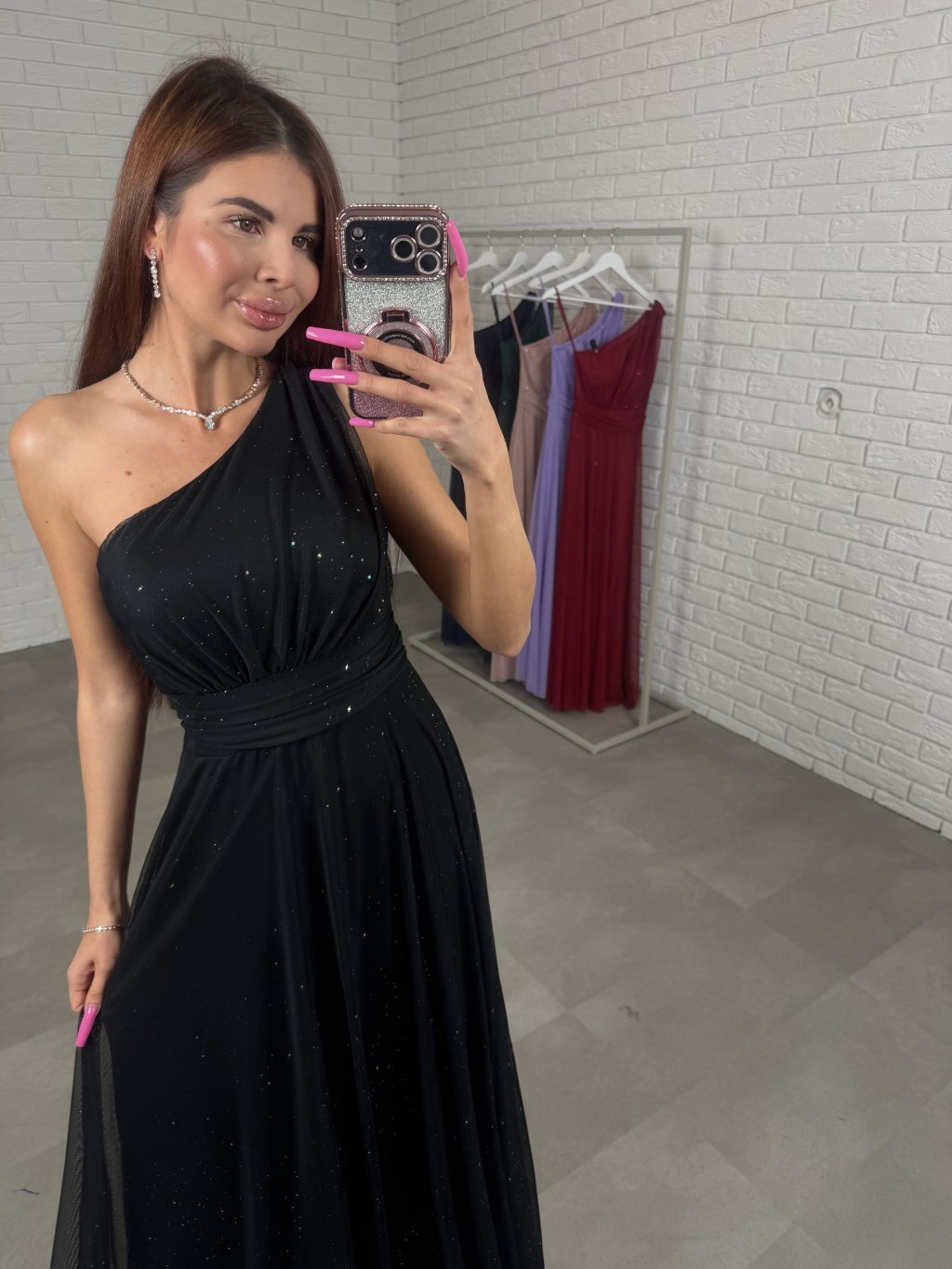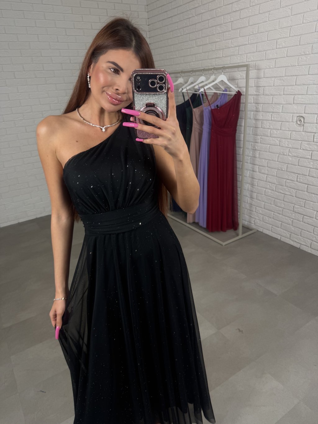 Šaty LILIEN sú spoločenské šaty, ktoré svojím strihom nechajú vyniknúť vrch tela. Hrubé ramienko je iba na jednom ramene, výstuž na prsiach zaručí, že sadnú na väčšie aj menšie prsia. Samozrejme možné nosiť aj bez podprsenky. Na páse prestrihnutý strih a od pásu padavé a voľné. Vzadu je malá mašlička na zaviazanie ako pridaný detail. Materiál je jemne naťahovací a trblietky sú v ňom, takže nevypadávajú ani nepichajú. Sadnú od XS po L, vhodné pre kočky do 175 centimetrov.