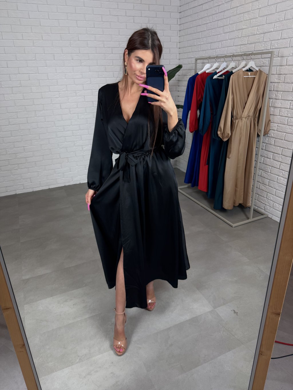 Šaty MARINA sú vhodné pre konfekčné veľkosti od XS až po XL, sú to zavinovacie saténové šaty s možnosťou zaviazania v páse, majú dlhý rukáv ukončený patentom, sú vhodné pre výšku až do 180 cm, vhodné aj na tehotenské bruško, modelka na fotke má 170 cm. Ideálne na rande aj ako plesové šaty.