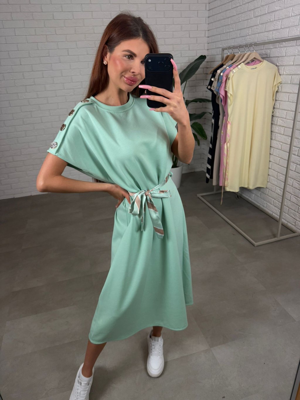 Súčasťou šiat je saténová mašľa, ktorou si vieš prispôsobiť pás podľa potreby a vytvoriť tak krajšiu siluetu. Kratší širší rukáv dodáva modelu uvoľnený a moderný vzhľad.