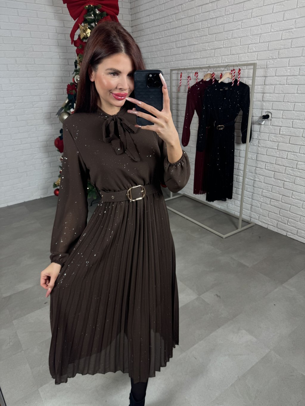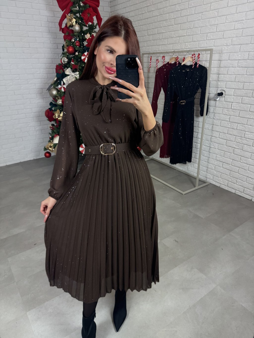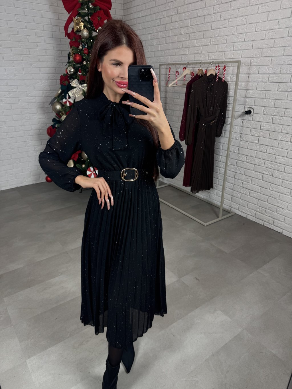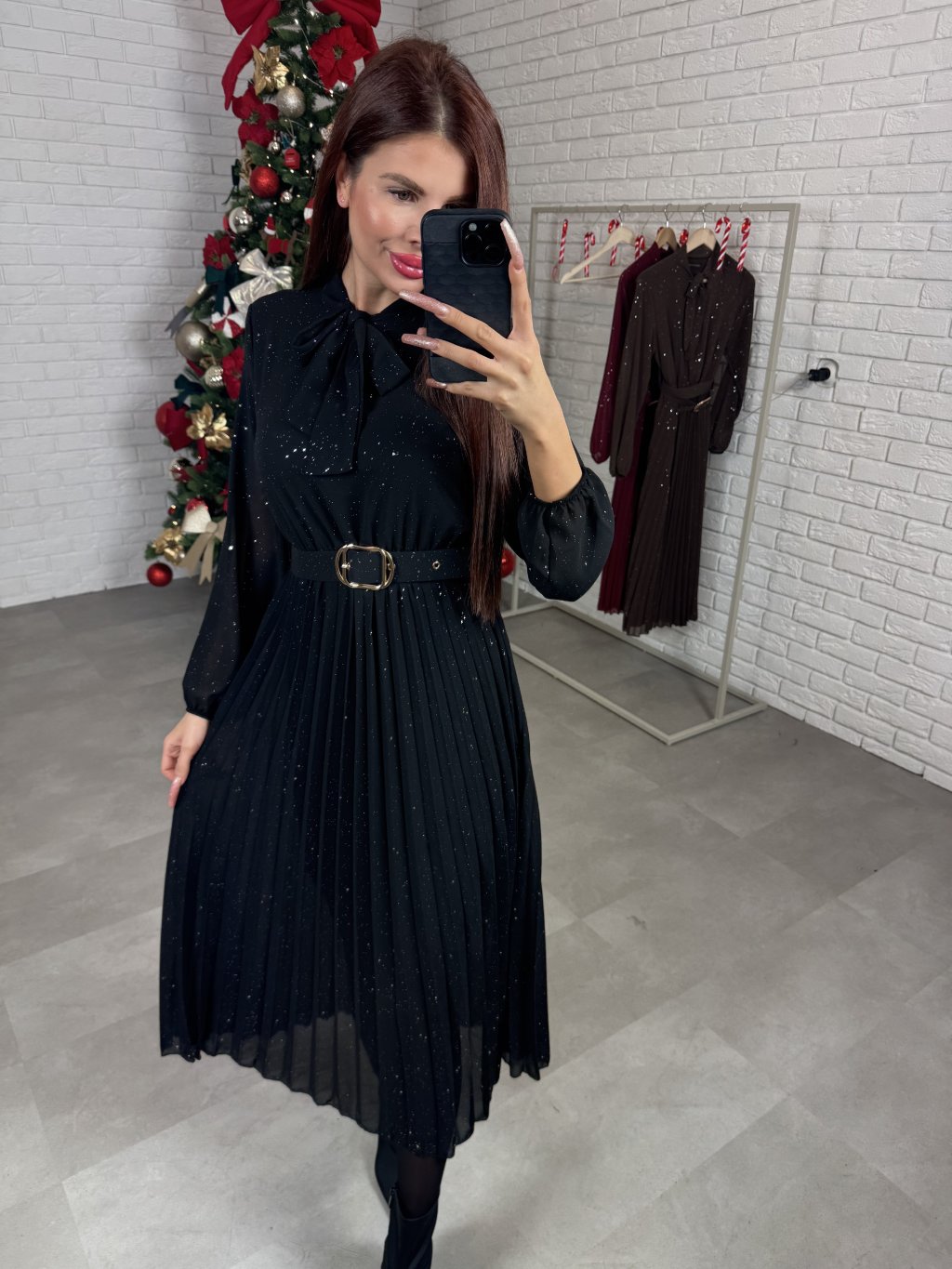 Šaty MILADA v trblietavom prevedení sadnú na každú postavu od XS po L. V páse majú elastickú gumku a opasok. V hornej časti majú mašľu na zaväzovanie. Sú v midi strihu, takže sadnú aj na vyššie postavy. Suknička je plisovaná v áčkovom strihu s podšívkou. Vďaka ich strihu pôsobia romantickým dojmom. Sadnú aj na tehotenské bruško. Trblietky zo šiat neopadávajú. Šaty zakryjú prípadné nedokonalosti.