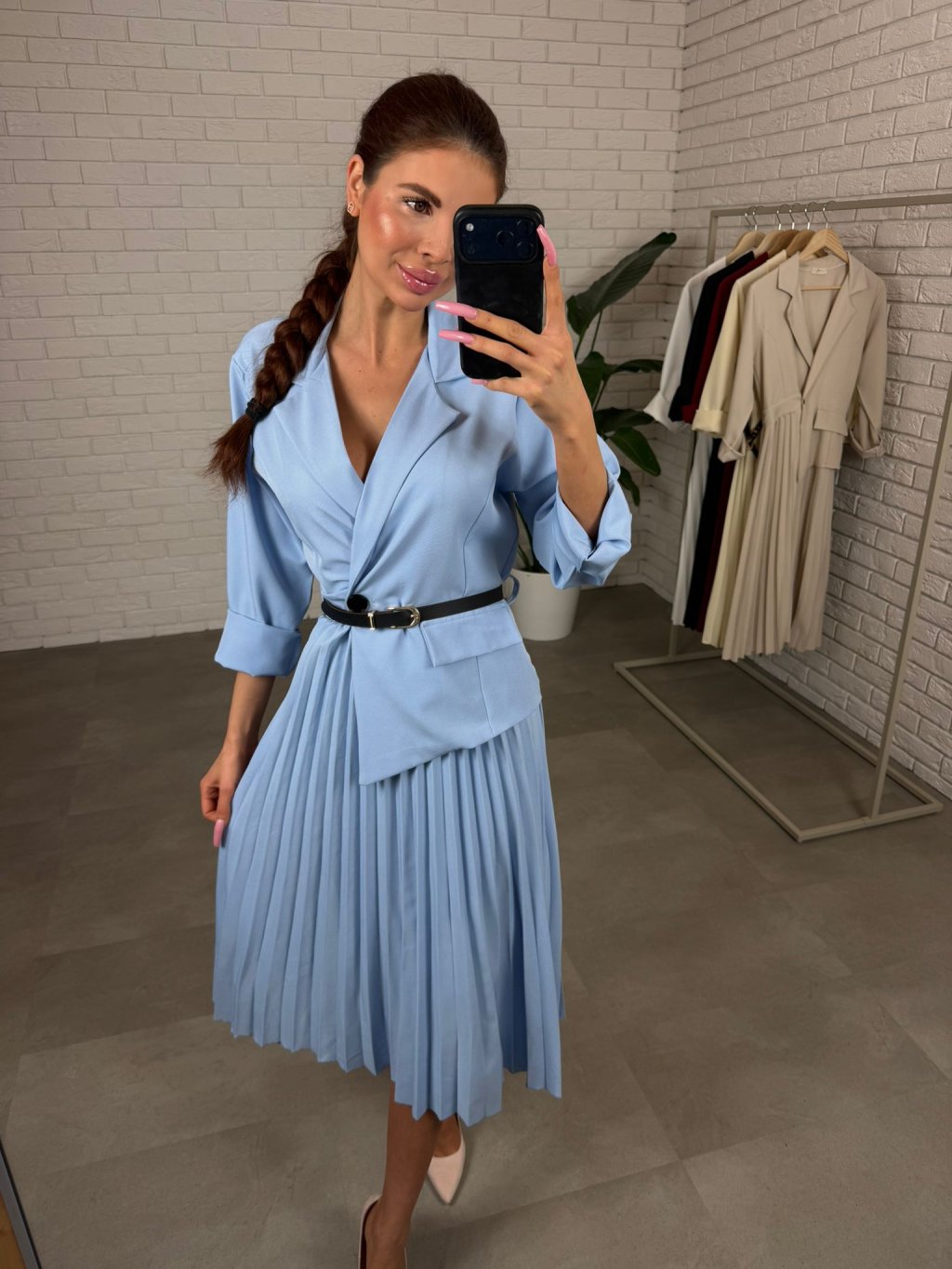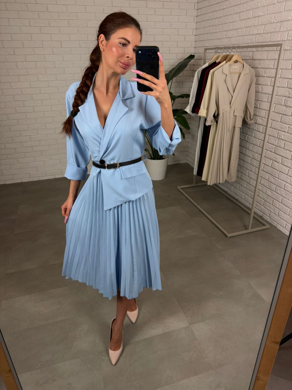 Šaty MONY sú elegantný a nadčasový kúsok, ktorý krásne zvýrazní ženskú siluetu a zároveň poskytne pohodlie počas celého dňa. Áčkový strih lichotí najmä postavám s výraznejšou spodnou časťou tela, takže prirodzene zakryje boky, stehná či zadoček a vytvorí peknú vyváženú siluetu. Šaty MONY sú elegantný a nadčasový kúsok, ktorý krásne zvýrazní ženskú siluetu a zároveň poskytne pohodlie počas celého dňa. Áčkový strih lichotí najmä postavám s výraznejšou spodnou časťou tela, takže prirodzene zakryje boky, stehná či zadoček a vytvorí peknú vyváženú siluetu. Plisovaná sukňa z kvalitného talianskeho materiálu dodáva šatám elegantný pohyb a pôsobí veľmi žensky. Materiál je príjemný na dotyk, drží si tvar a vôbec sa nekrčí, takže šaty vyzerajú upravene aj po celodennom nosení.