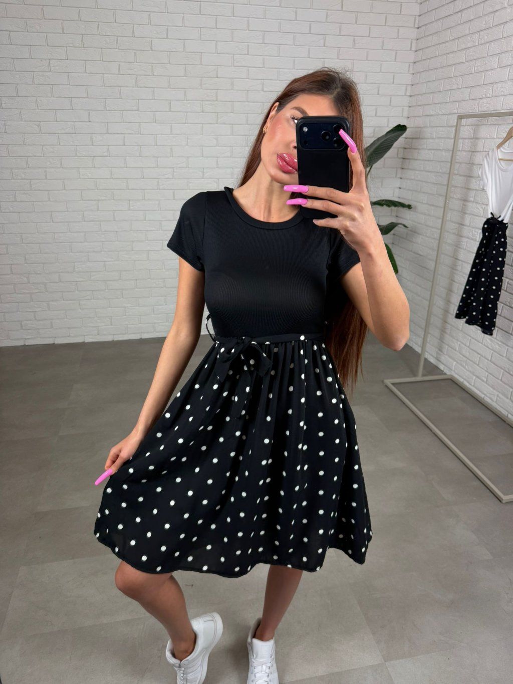 Šaty NORMEN pre nižšie postavy čierne bodky