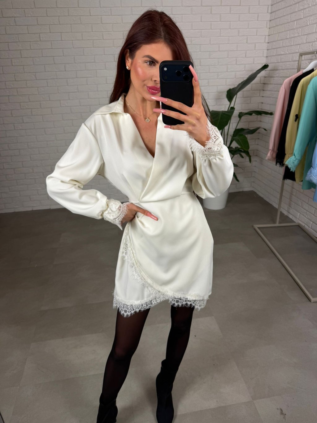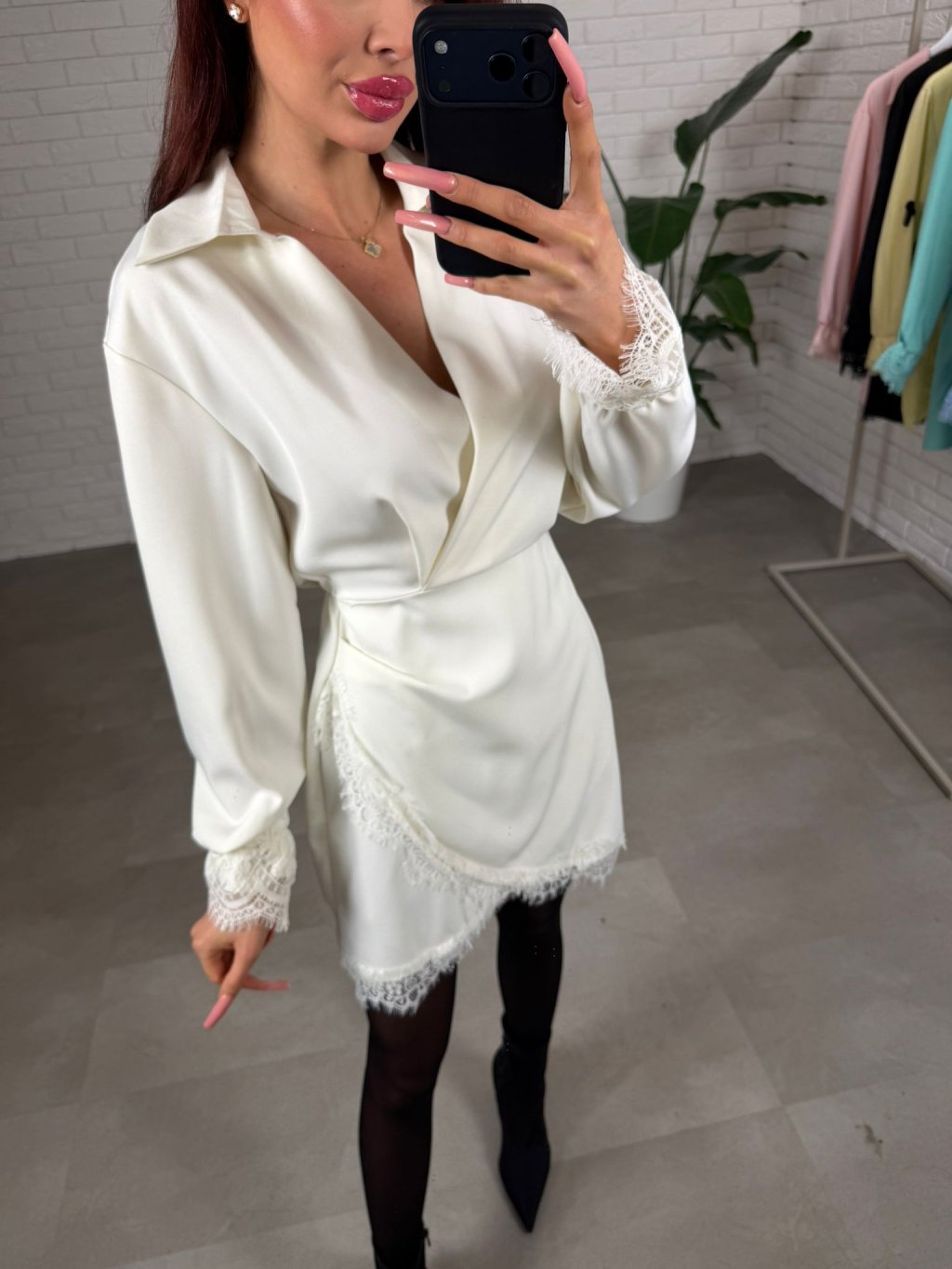 Šaty ORION z luxusného materiálu a v jarných farbách, majú prekladaný výstrih a sukničku, čipkované rukáviky a košelový golierik, pás je maskovaného strihu a má elastickú gumku, vhodné na veľkosti od XS až M.