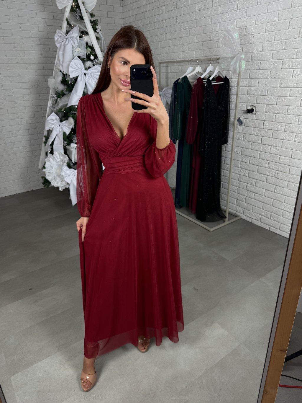 Šaty PALON sú ušité z padavého, trblietavého materiálu. Sú veľmi bohaté na materiál. Majú voľný áčkový strih, ktorý sadne na každý typ postavy aj na tehotenské bruško. Vďaka tomuto strihu šaty výborne sedia na veľkosti od XS po XL. Rukávy sú zakončené patentom a dekolt je regulovateľný, takže si ho môžete prispôsobiť podľa potreby – sadne aj na menšie aj na väčšie prsia. Šaty majú vzadu viazanie, ktoré umožňuje ešte lepšie prispôsobenie postave. Sú ideálnou voľbou pre dievčatá, ktoré hľadajú pohodlie aj eleganciu v jednom.
