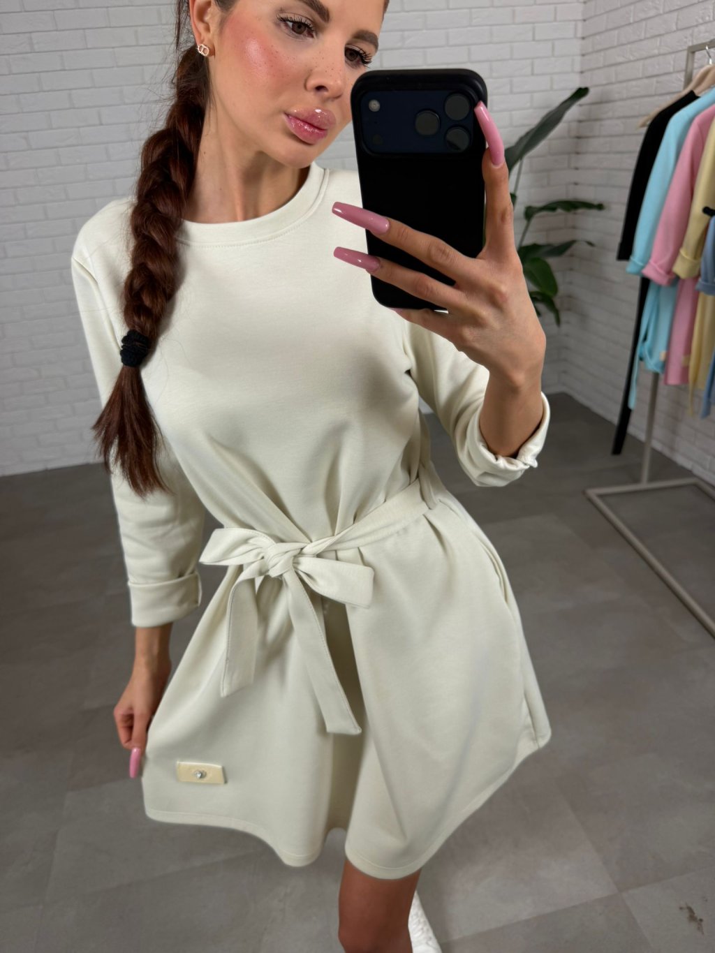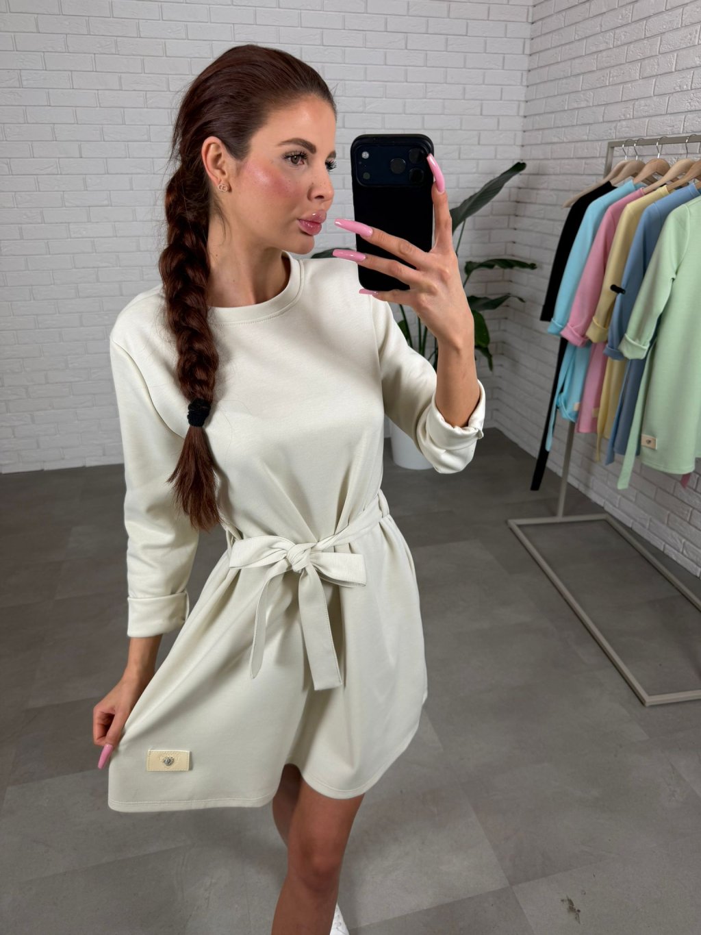 Vyrobené sú z kvalitného poloteplákového materiálu, ktorý je príjemný na dotyk a zároveň si drží svoj tvar počas celého dňa. Dlhý rukáv dodáva šatám univerzálnosť a využiješ ich počas chladnejších dní ale aj prechodného obdobia kedy si môžeš pokojne rukáv vyhrnúť. Súčasťou je opasok na previazanie, ktorým si môžeš zvýrazniť pás, no šaty vyzerajú skvelo aj bez neho, ak preferuješ voľnejší štýl. Praktické hlboké vrecká po bokoch sú praktický detail, ktorý si zamiluješ.