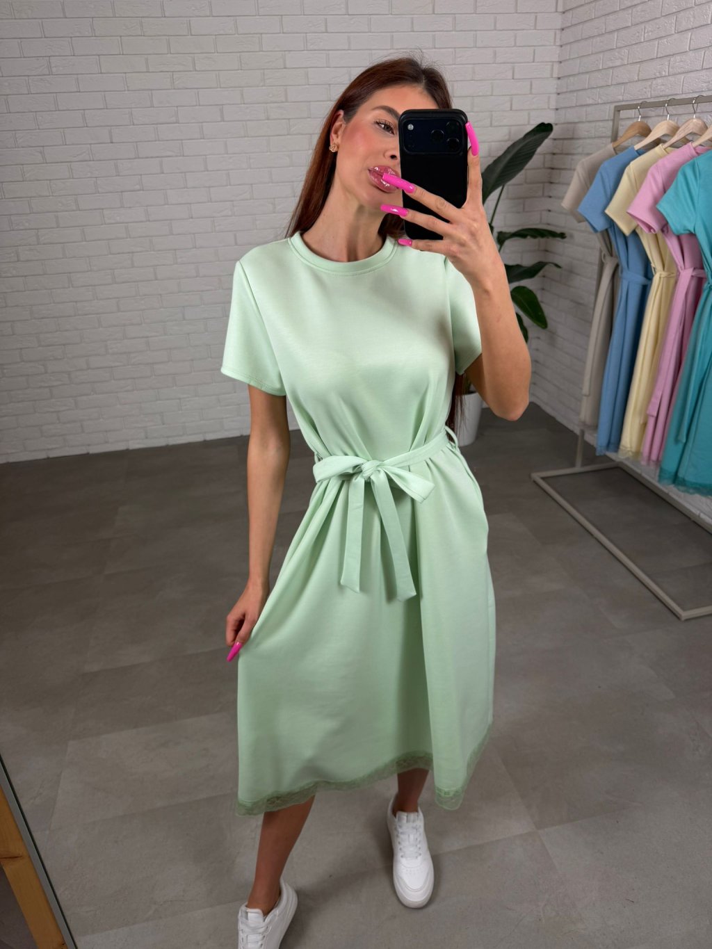 Šaty ZAMBA midi s čipkou mentolové