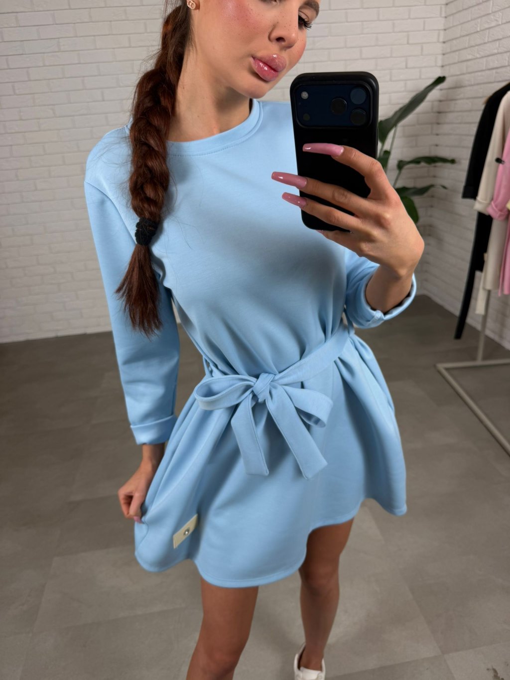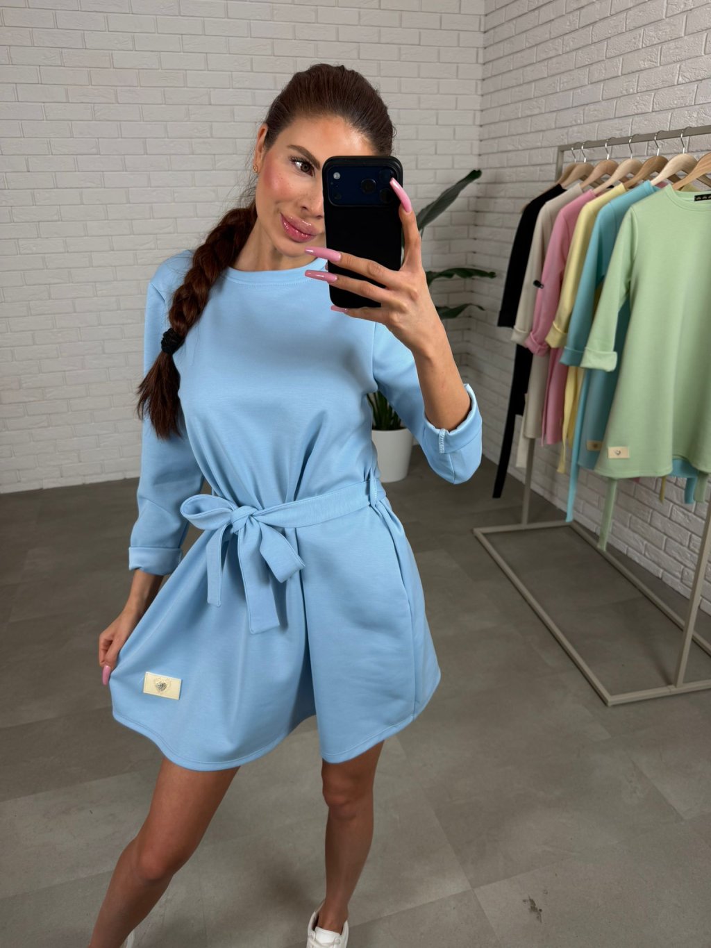 Vyrobené sú z kvalitného poloteplákového materiálu, ktorý je príjemný na dotyk a zároveň si drží svoj tvar počas celého dňa. Dlhý rukáv dodáva šatám univerzálnosť a využiješ ich počas chladnejších dní ale aj prechodného obdobia kedy si môžeš pokojne rukáv vyhrnúť. Súčasťou je opasok na previazanie, ktorým si môžeš zvýrazniť pás, no šaty vyzerajú skvelo aj bez neho, ak preferuješ voľnejší štýl. Praktické hlboké vrecká po bokoch sú praktický detail, ktorý si zamiluješ.