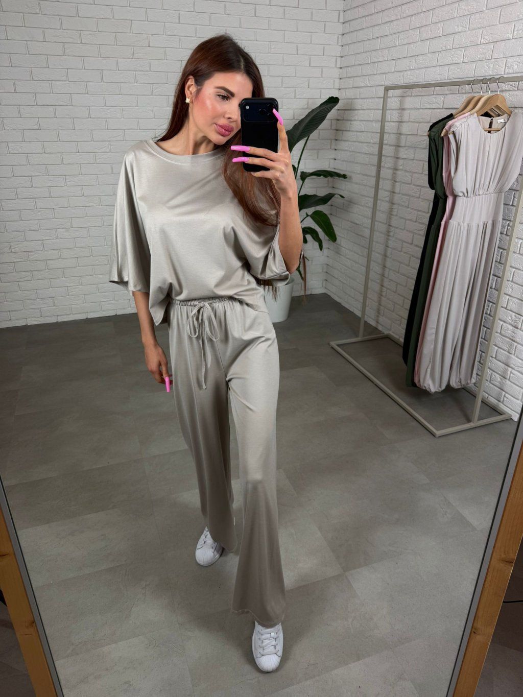Vrchný diel má voľný ležérny strih, ktorý poskytuje pohodlie počas celého dňa, zatiaľ čo nohavice sú takisto voľné a neobmedzujú v pohybe. V páse sa nachádza šnúrka, vďaka ktorej si vieš komplet jednoducho prispôsobiť podľa svojej postavy.