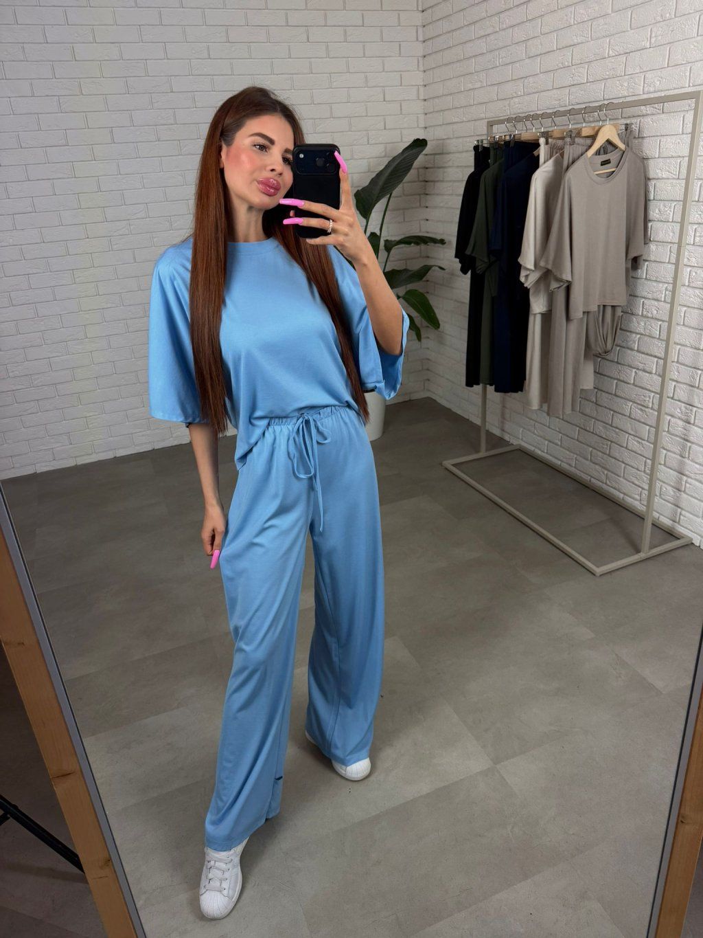 Vrchný diel má voľný ležérny strih, ktorý poskytuje pohodlie počas celého dňa, zatiaľ čo nohavice sú takisto voľné a neobmedzujú v pohybe. V páse sa nachádza šnúrka, vďaka ktorej si vieš komplet jednoducho prispôsobiť podľa svojej postavy.