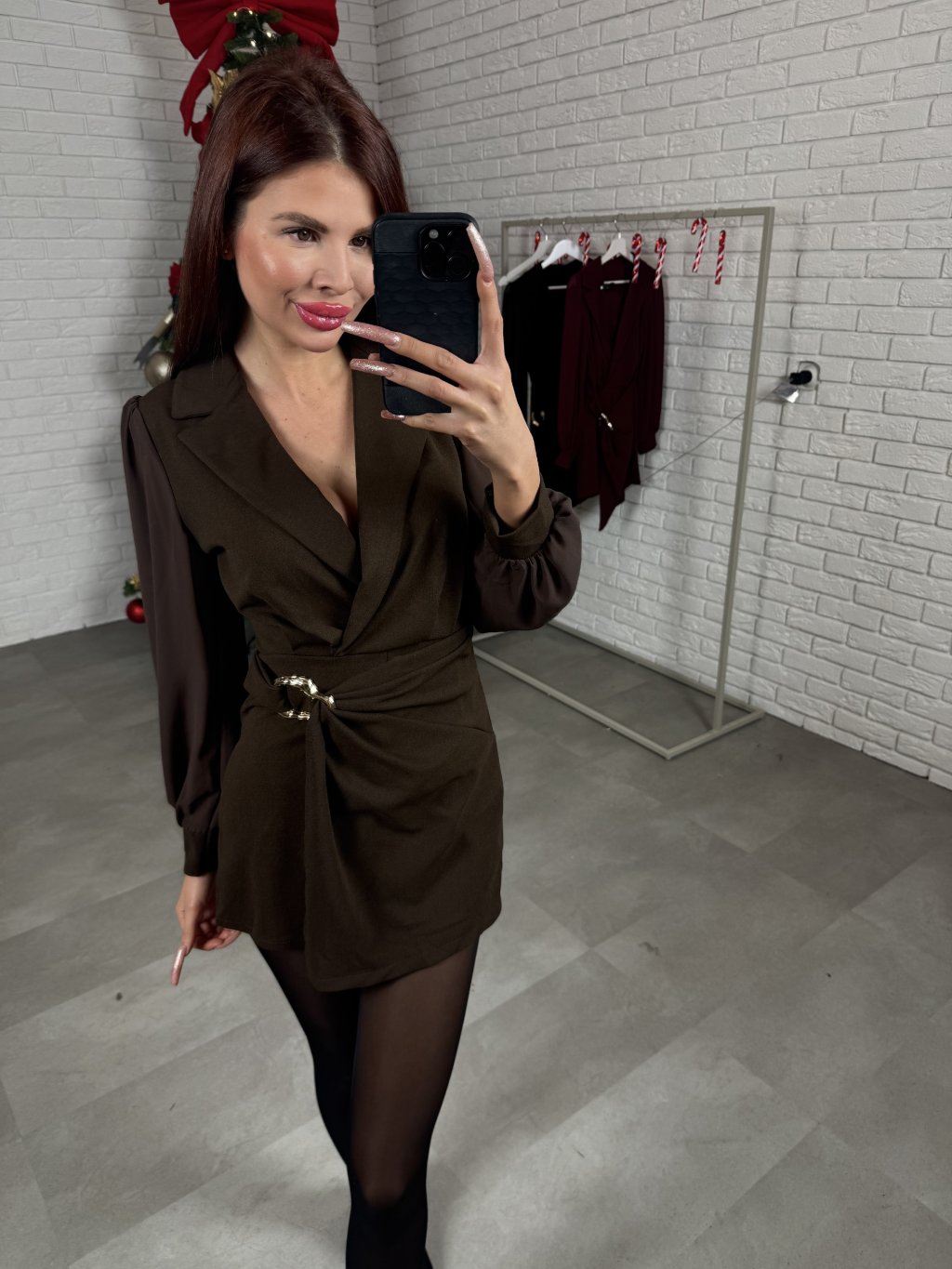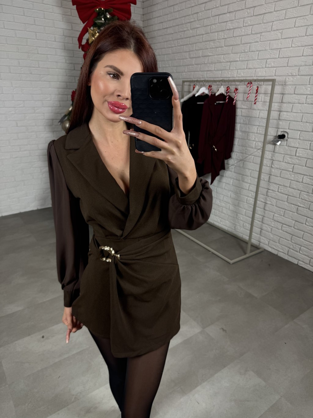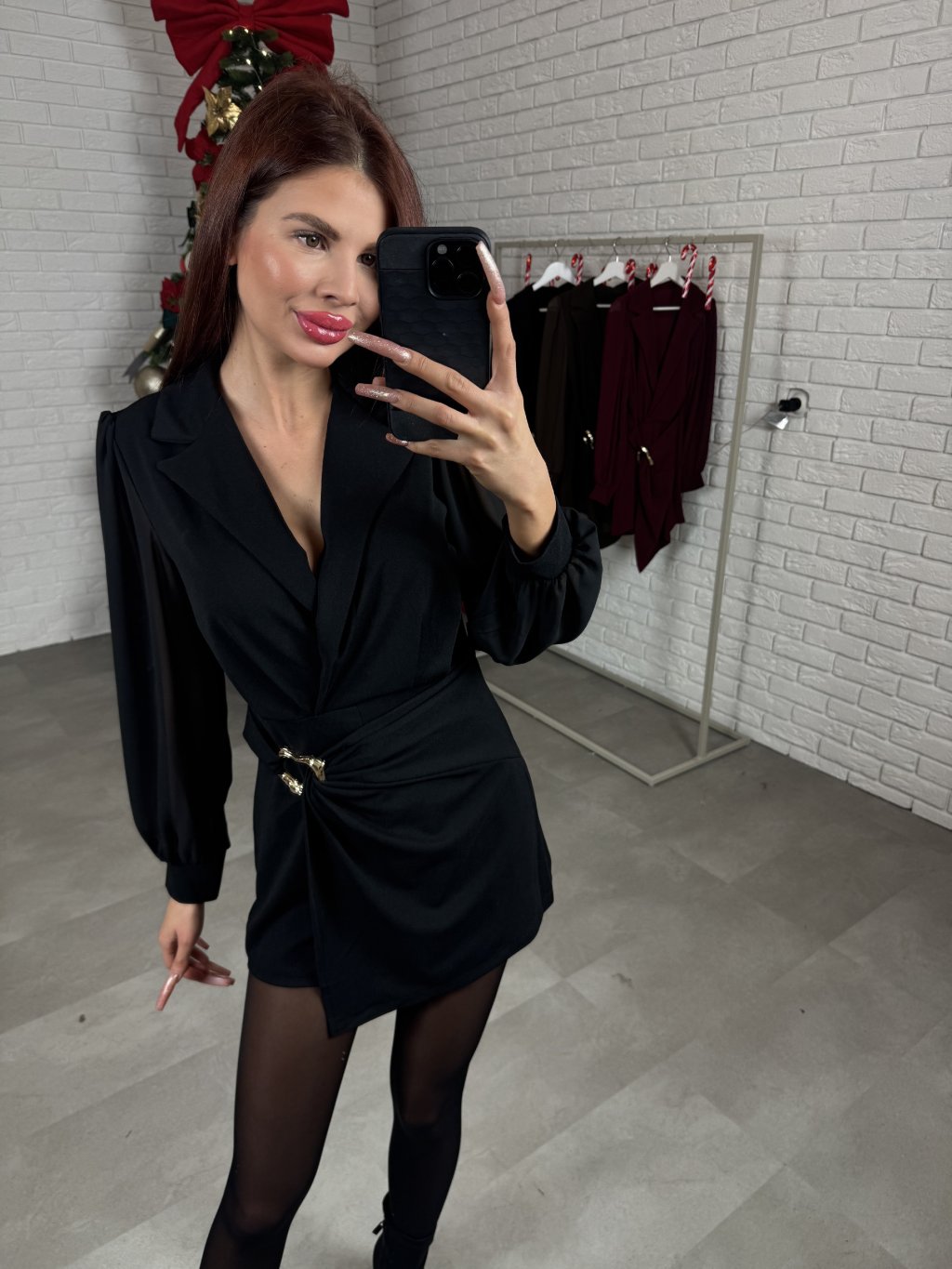 Sukňový overal Nataly vo veľmi peknom strihu. Spodná časť pôsobí ako sukňa ale sú to kraťasy. V spodnej časti je zlatý detail, ktorý pôsobí elegantne. Sadne od XS po M . Rukáv je polotransparentný. Overal má regulovateľný véčkový výstrih. Výškovo sadne do 175 cm. Vhodný na večierky ale aj na bežné nosenie.