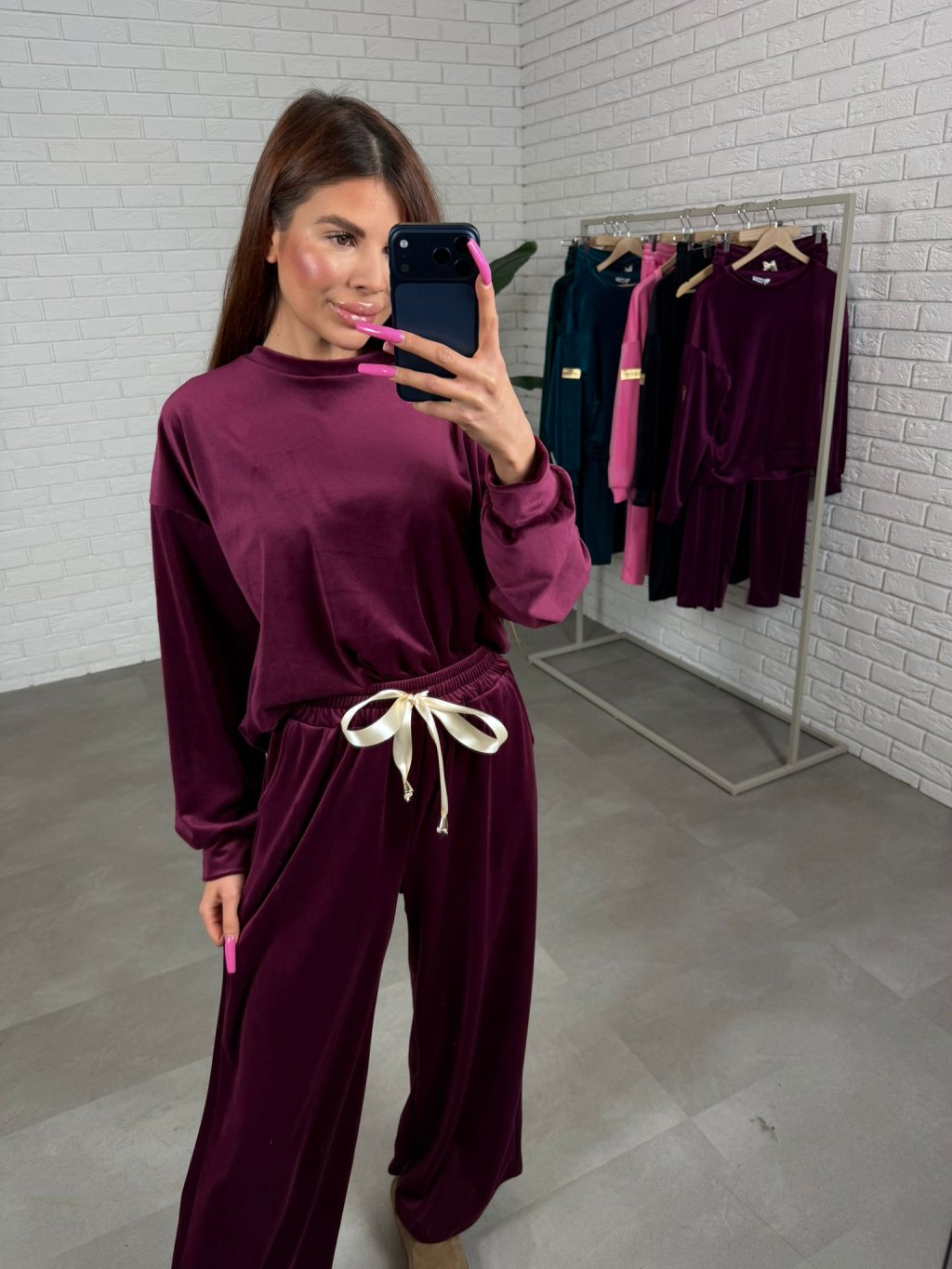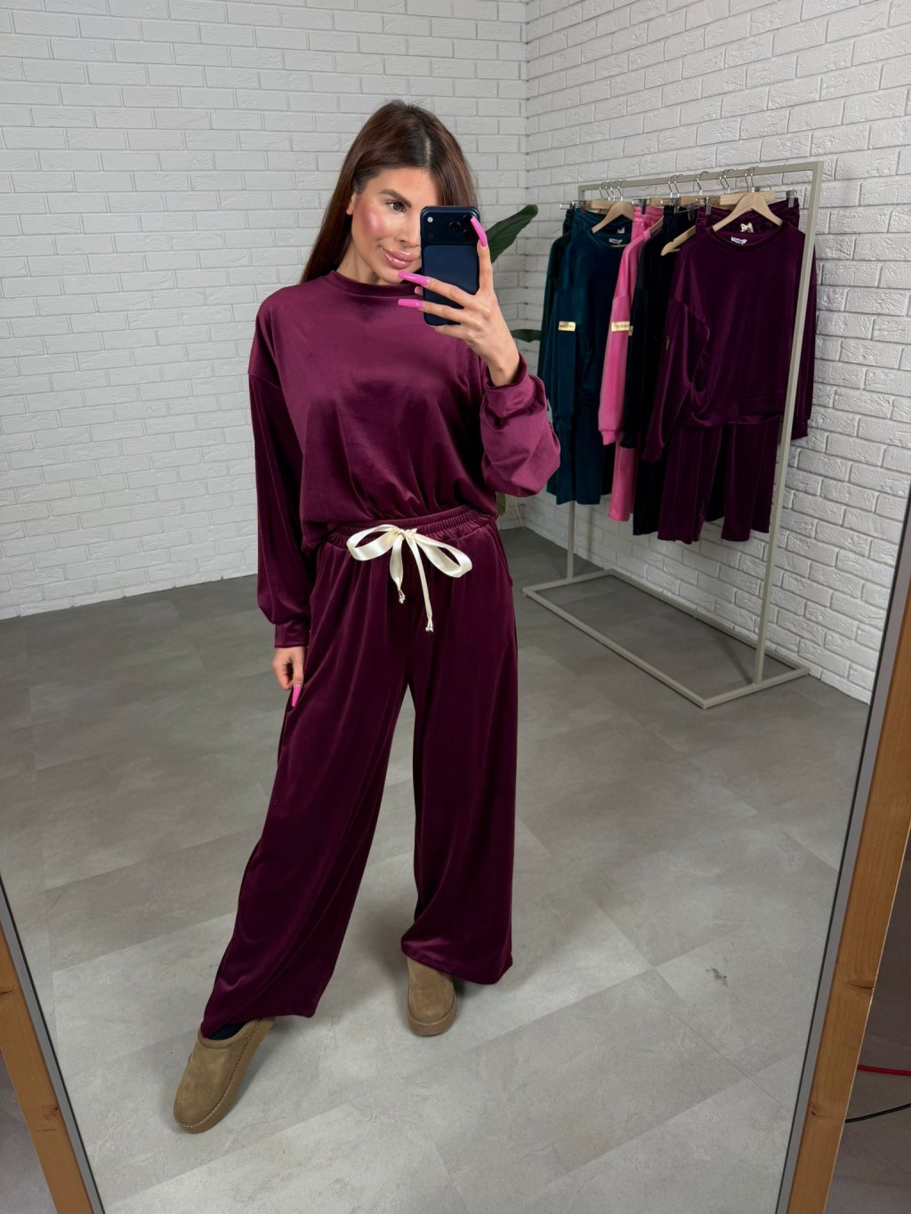 Zamatová súprava BENOR v rozšírenom zvonom strihu má elastický pás. V páse je krásna mašlička vďaka čomu nohavice sadnú od XS po XL. V páse elastická gumka. Rukávy na mikine sú ukončené patentom. Nohavice sú v zvonovom strihu. Po bokoch sa nachádzajú vrecká. Súprava sadne aj na vyššie dievčatá. Jednotlivé kúsky môžeš nosiť aj osobitne. Táto súprava je dokonalým spojením pohodlia a štýlu – ideálna voľba pre modernú ženu, ktorá miluje športovú eleganciu v každom okamihu ✨👟