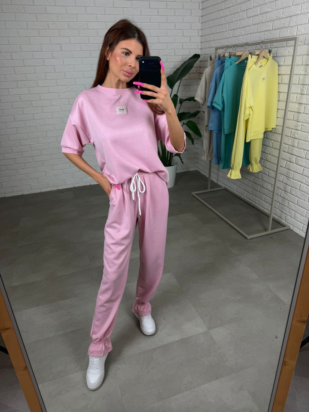 Súprava ELORA je presne ten typ kúsku, ktorý si obľúbiš na každodenné nosenie – pohodlná, praktická a stále pôsobí upravene. Vyrobená je z najobľúbenejšieho poloteplákového materiálu, ktorý je mäkký, príjemný na dotyk a zároveň si drží pekný tvar počas celého dňa. Top má krátky rukáv a voľný ležérny strih, ktorý siaha až po zadok, takže krásne zakryje, čo treba, a zároveň poskytne maximálne pohodlie. Rukávy sú dostatočne voľné, takže sa prispôsobia každej ručičke bez pocitu obmedzenia. Nohavice sú ukončené patentom, vďaka čomu pôsobia upravene a skvelo sa kombinujú najmä s teniskami. Strih je pohodlný a prispôsobí sa aj postavám s výraznejšími krivkami v oblasti bokov, bruška či zadku. Súprava ELORA je ideálna pre vyššie kočky, vhodná na výšku približne od 165 do 185 cm a veľkostne sadne na M až XL.