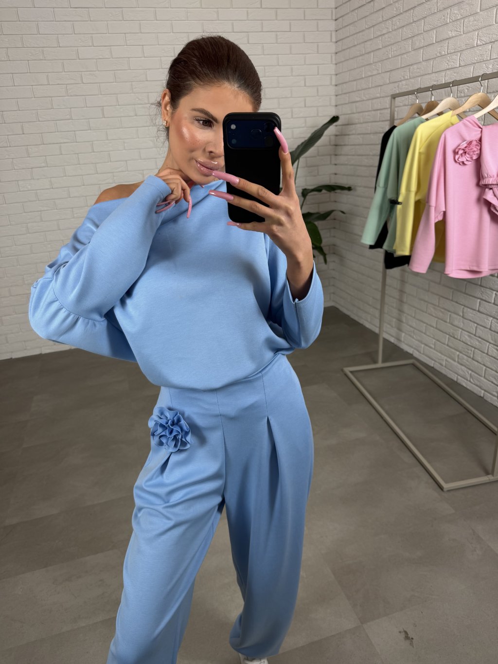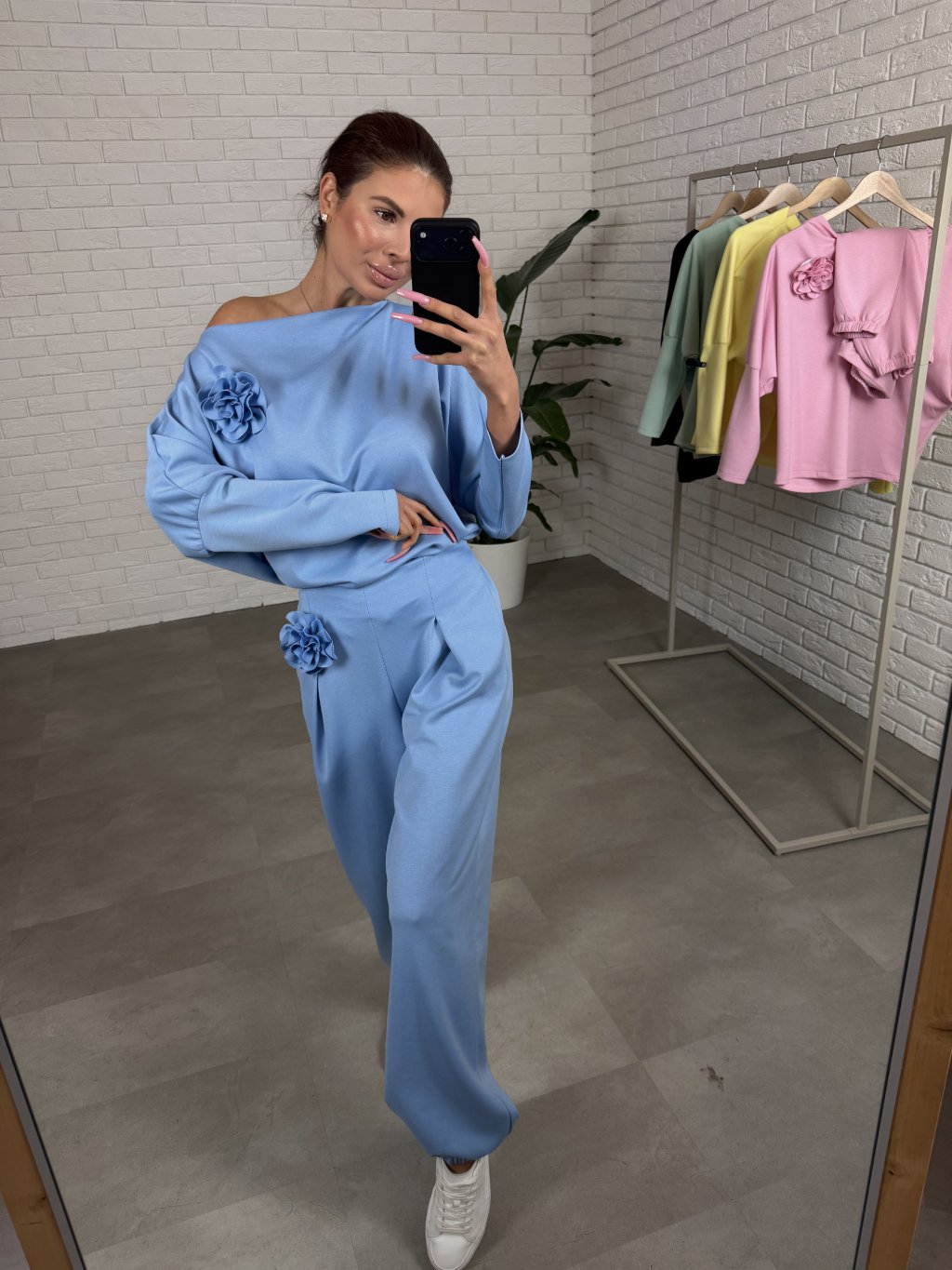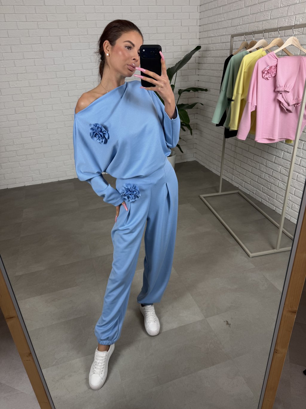 Súprava ROSE je moderný a pohodlný kúsok s voľným ležérnym strihom, ktorý si zamiluješ na každý deň. Príjemný materiál krásne splýva a poskytuje komfort počas celého dňa. Nohavice majú extra elastickú gumičku v páse, ktorá netlačí, a praktické hlboké vrecká. Mikinka je voľná, má dostatočne dlhé rukávy a môžeš ju nosiť aj jemne spustenú na jedno plece. Súčasťou sú dva odopínateľné kvietky, vďaka ktorým si outfit upravíš podľa nálady. Súprava je vhodná aj pre vyššie postavy do 185 cm a veľkostne sadne od M po XXL.