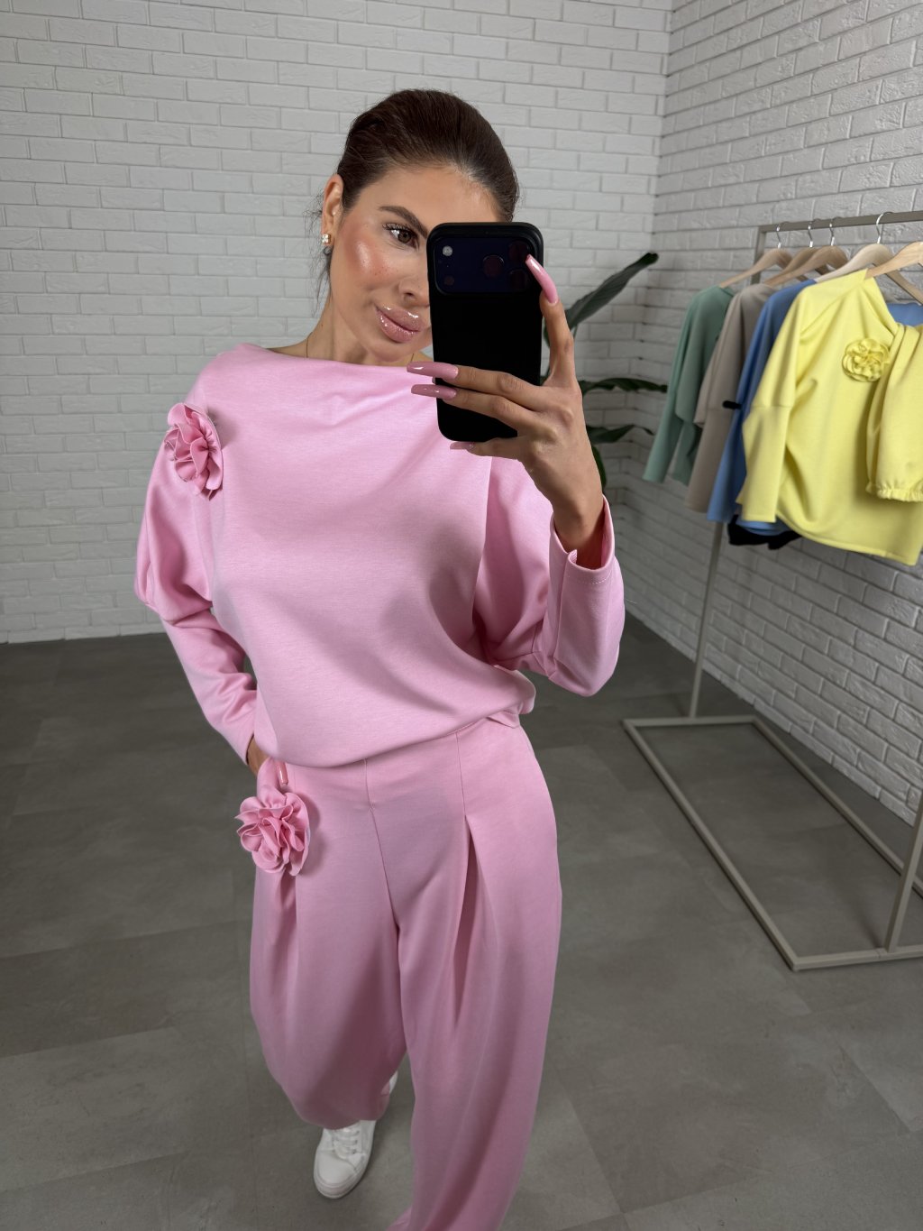 Súprava ROSE je moderný a pohodlný kúsok s voľným ležérnym strihom, ktorý si zamiluješ na každý deň. Príjemný materiál krásne splýva a poskytuje komfort počas celého dňa. Nohavice majú extra elastickú gumičku v páse, ktorá netlačí, a praktické hlboké vrecká. Mikinka je voľná, má dostatočne dlhé rukávy a môžeš ju nosiť aj jemne spustenú na jedno plece. Súčasťou sú dva odopínateľné kvietky, vďaka ktorým si outfit upravíš podľa nálady. Súprava je vhodná aj pre vyššie postavy do 185 cm a veľkostne sadne od M po XXL.