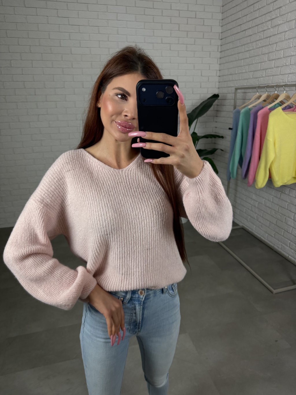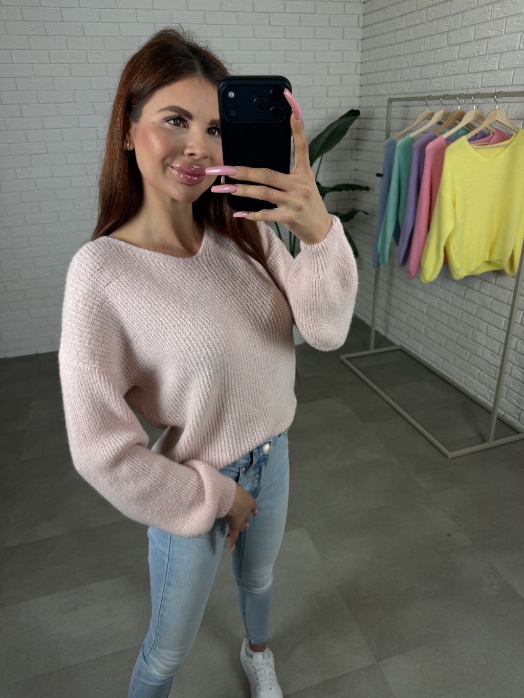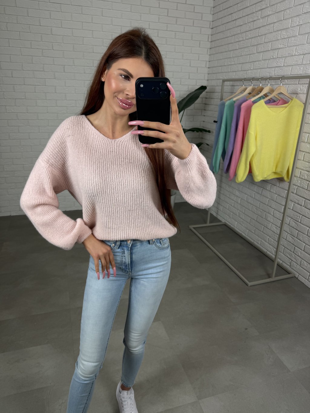 Svetrík DALVO je dostupný vo viacerých krásnych pastelových farbách, ktoré dodajú outfitu jemný a svieži vzhľad.