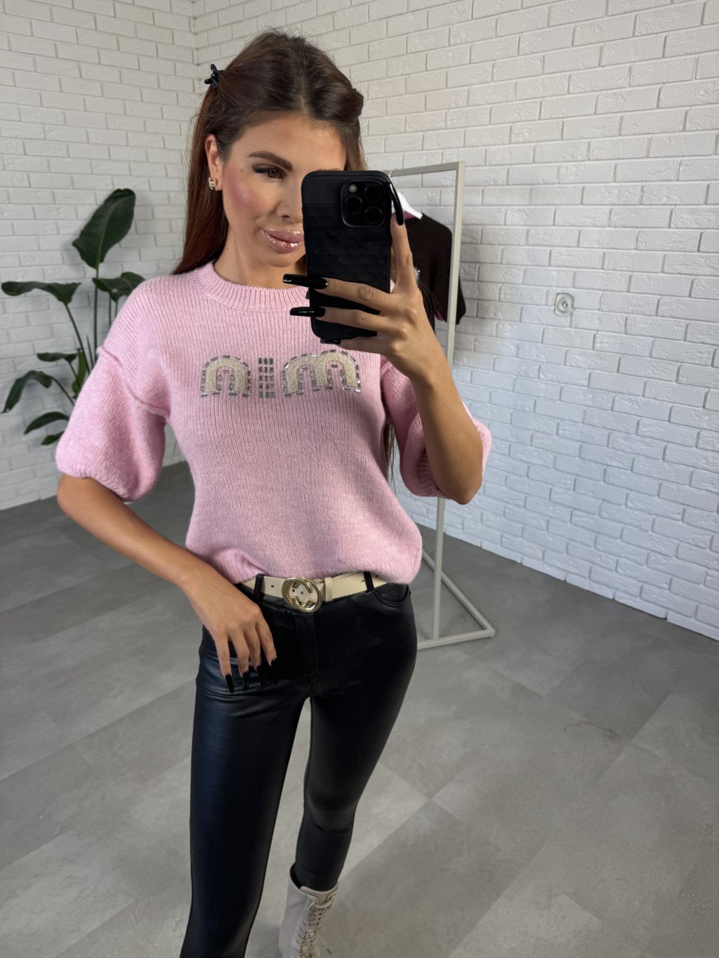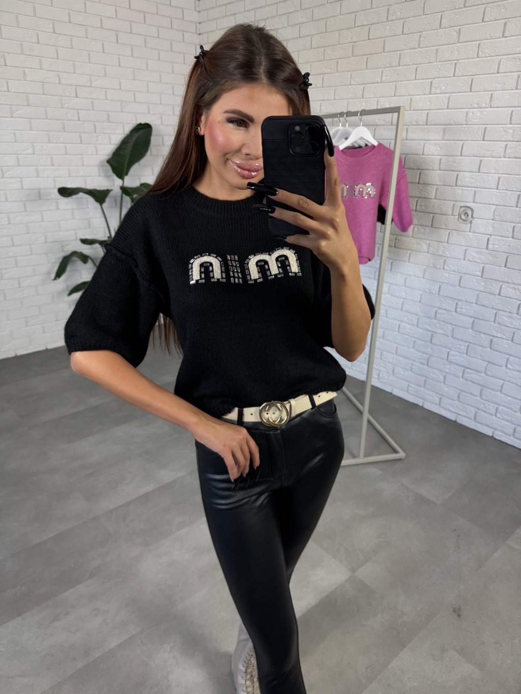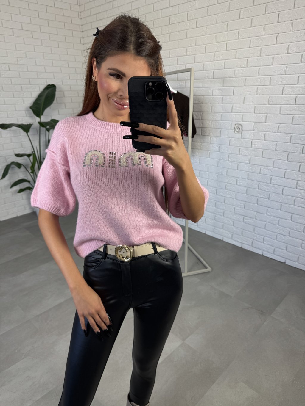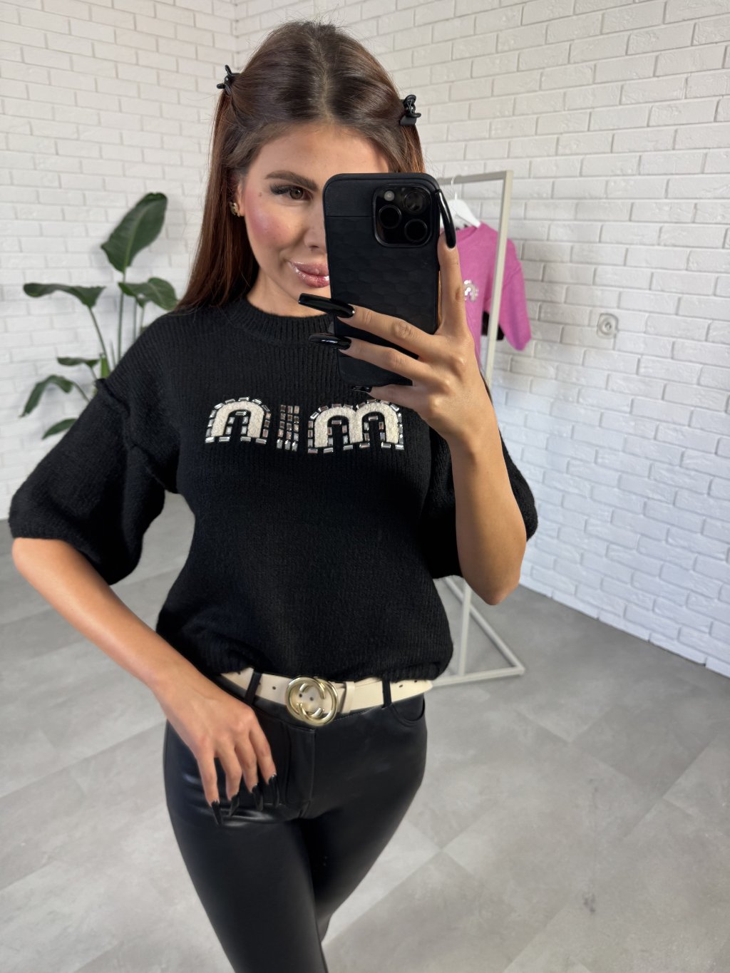 Sveter MORIS má krátky rukáv, na ktorom sa nachádza prešívanie a na prednej časti sa nachádza nápis s jemným kamienkovým zdobením. Materiál je veľmi kvalitná vlna a veľkosť sedí od XS po menšie L.