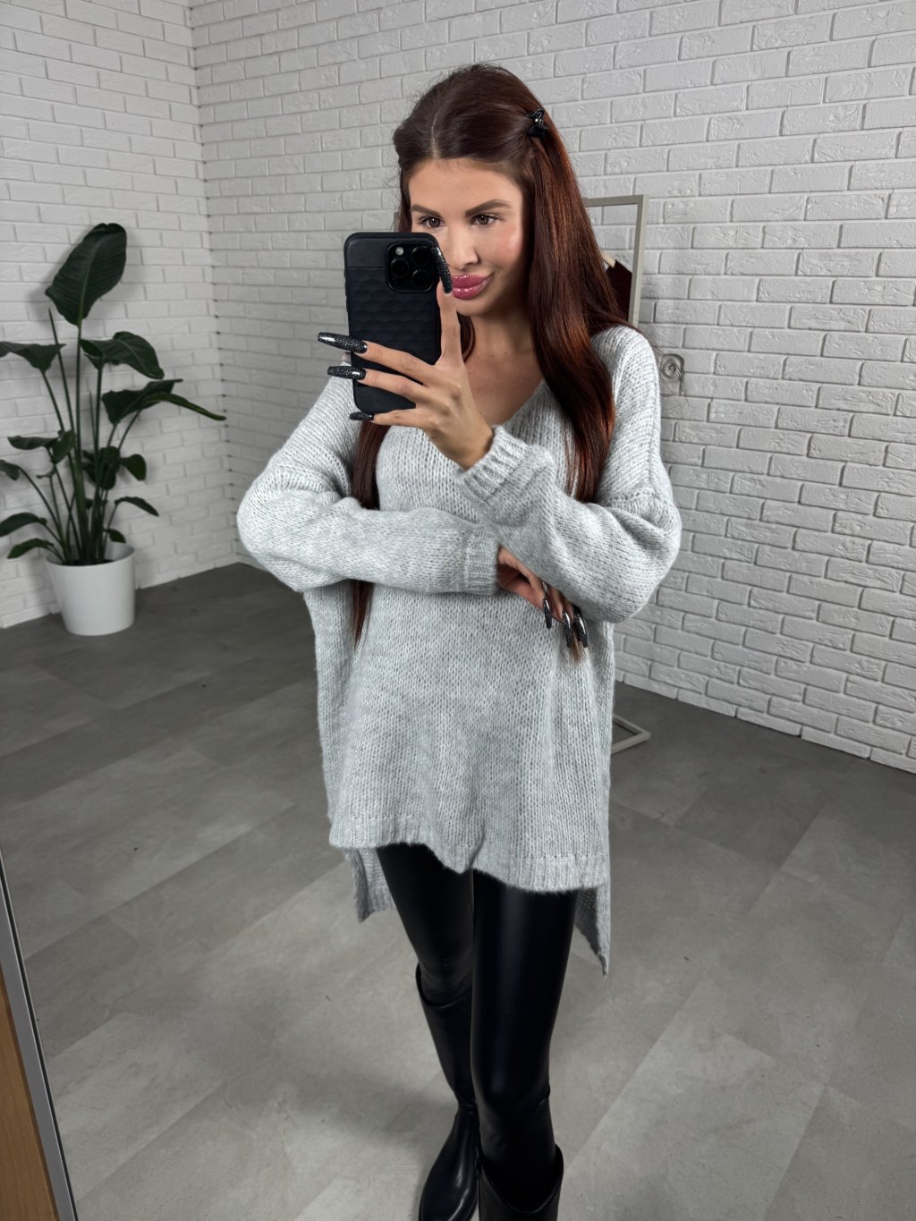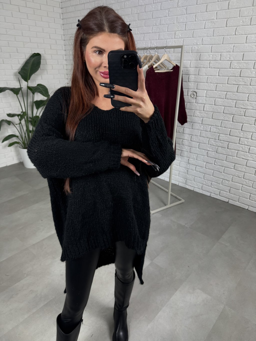 Sveter NEMUR vo voľnom strihu. Vzadu je predlžený. Materiál je mäkký a hrejivý. Svetrík má večkový decentný výstrih. Je vhodný aj na vyššie postavy. Sadne od XS po XL. Jednoduchý kúsok vhodný na jeseň aj na zimu. Zakryje všetky nedostatky.
