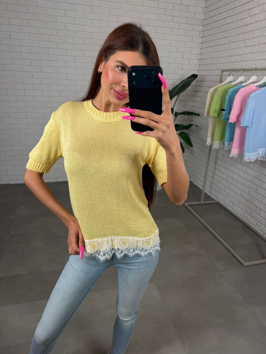 Spodná časť je ukončená jemným čipkovaným volánikom, ktorý dodáva svetríku ženský a trendový detail. Vďaka širokej palete farieb si vyberieš presne taký odtieň, ktorý oživí tvoj jarný šatník.