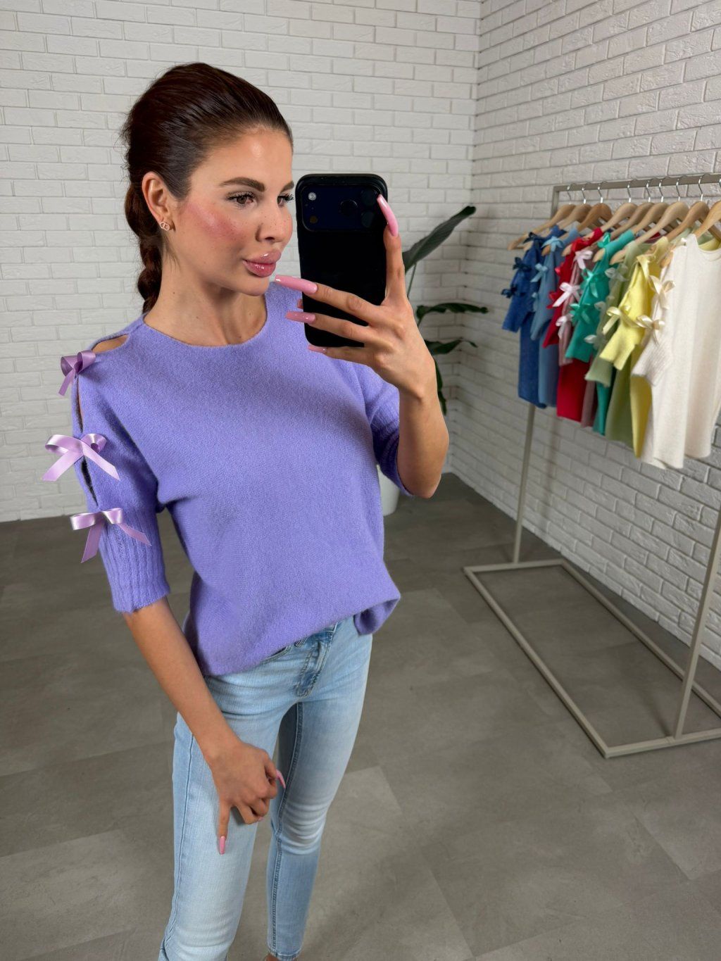Dominantným prvkom sú tri saténové mašle na rukávoch, ktoré dodávajú svetríku romantický a elegantný charakter. Elastické rukávy sa pohodlne prispôsobia a držia tvar, pričom vytvárajú jemný a upravený vzhľad. Svetrík sa jednoducho kombinuje s nohavicami, sukňou aj rifľami a je ideálny na bežné dni aj elegantnejšie príležitosti. Vďaka vysokej elasticite materiálu sadne na konfekčné veľkosti od XS po XL.
