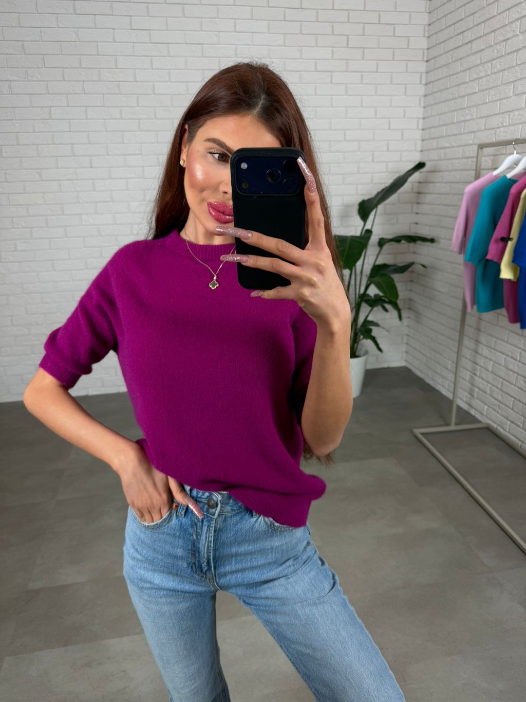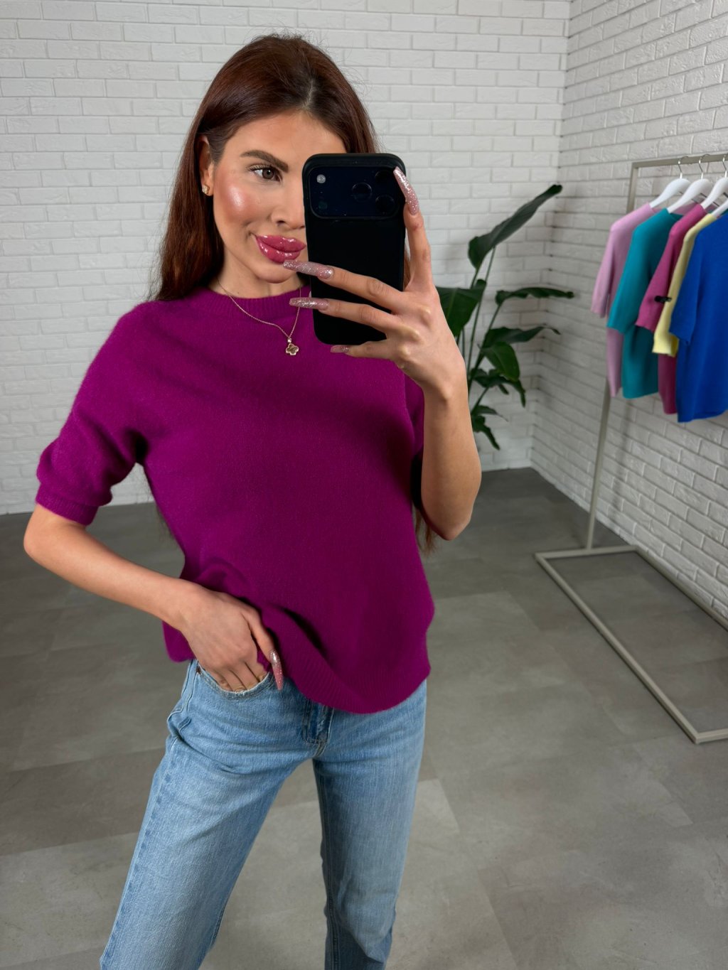Sveter z jemného úpletu DAXO slivkový