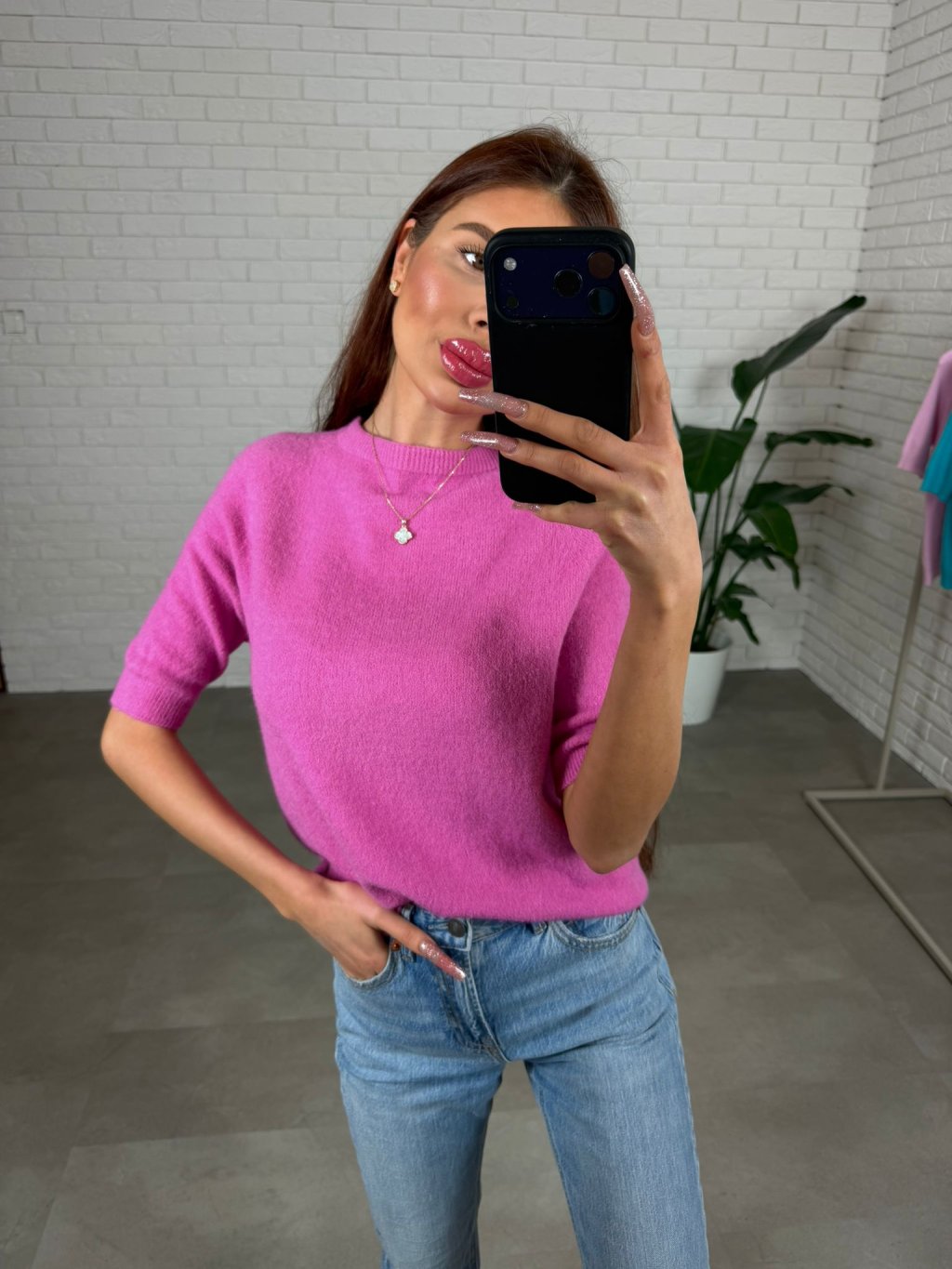 Sveter z jemného úpletu DAXO sýto ružový