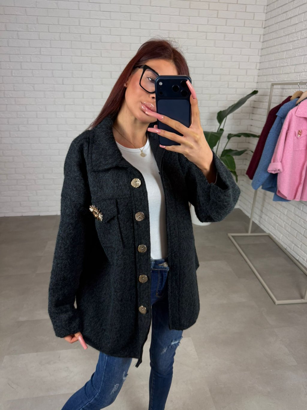 Teplá košeľa NURISA je skvelý univerzálny kúsok, ktorý môžeš nosiť ako košeľu aj ako kabátik. Je vyrobená z teplučkého mäkkučkého koberčekového materiálu. Má predĺžený strih. Zdobia ju zlaté gombíky a odnímateľná zlatá brošňa a vrecká. Sadne na konfekčné veľkosti od XS po XL.