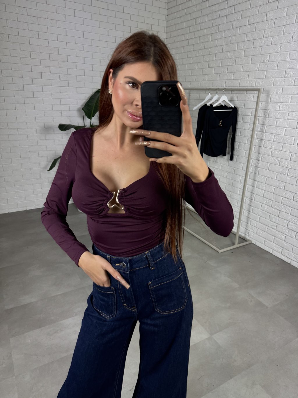 Top LUENO ti zaručí sexy ale predovšetkým štýlový look. Trendy zlatá spona v strede topíku zaujme na prvý pohľad. Materiál topíku je nesmierne hladký, klzký, no veľmi elastický vďaka čomu sadne pohodlne na veľkosť XS až L. Výhodou je, že má miernu výstuž takže ho môžeš pohodlne nosiť bez podprsenky ale samozrejme aj s ňou. Nie je to žiadny crop-top, dĺžkovo je do pásu, takže je vhodný aj na jesennú či zimnú sezónu.