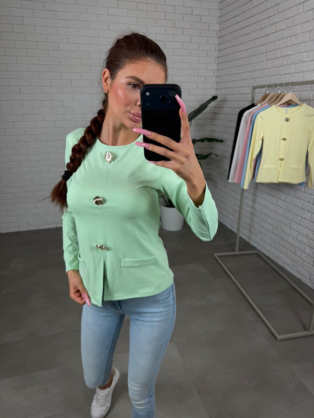 TORA je elegantný top s dlhým rukávom, ktorý je ideálnou voľbou pre ženy, ktoré pracujú v kancelárii alebo ich práca vyžaduje formálnejší štýl obliekania. Je jednoduchý, čistý a veľmi ľahko kombinovateľný. Vyrobený je z kvalitného hladkého materiálu, ktorý je pevný, odolný a naozaj „nezničiteľný“. Nežmolkuje sa, nesperie sa a farby si dlhodobo zachovajú svoju intenzitu aj tvar. Materiál je príjemný, elastický a krásne splýva s telom, čím vytvára elegantnú siluetu. Aby top nepôsobil príliš jednoducho, dopĺňajú ho tri zlaté mušličkové ozdoby, ktoré mu dodávajú jemný, sofistikovaný detail. Rukávy sú dlhé, s krátkym rozparkom na konci, ktorý pôsobí veľmi vkusne. Predná časť je doplnená o jemné „falošné“ vrecká, ktoré dotvárajú celkový elegantný vzhľad. Strih je mierne užší, preto ho odporúčame pre veľkosti XS až M.