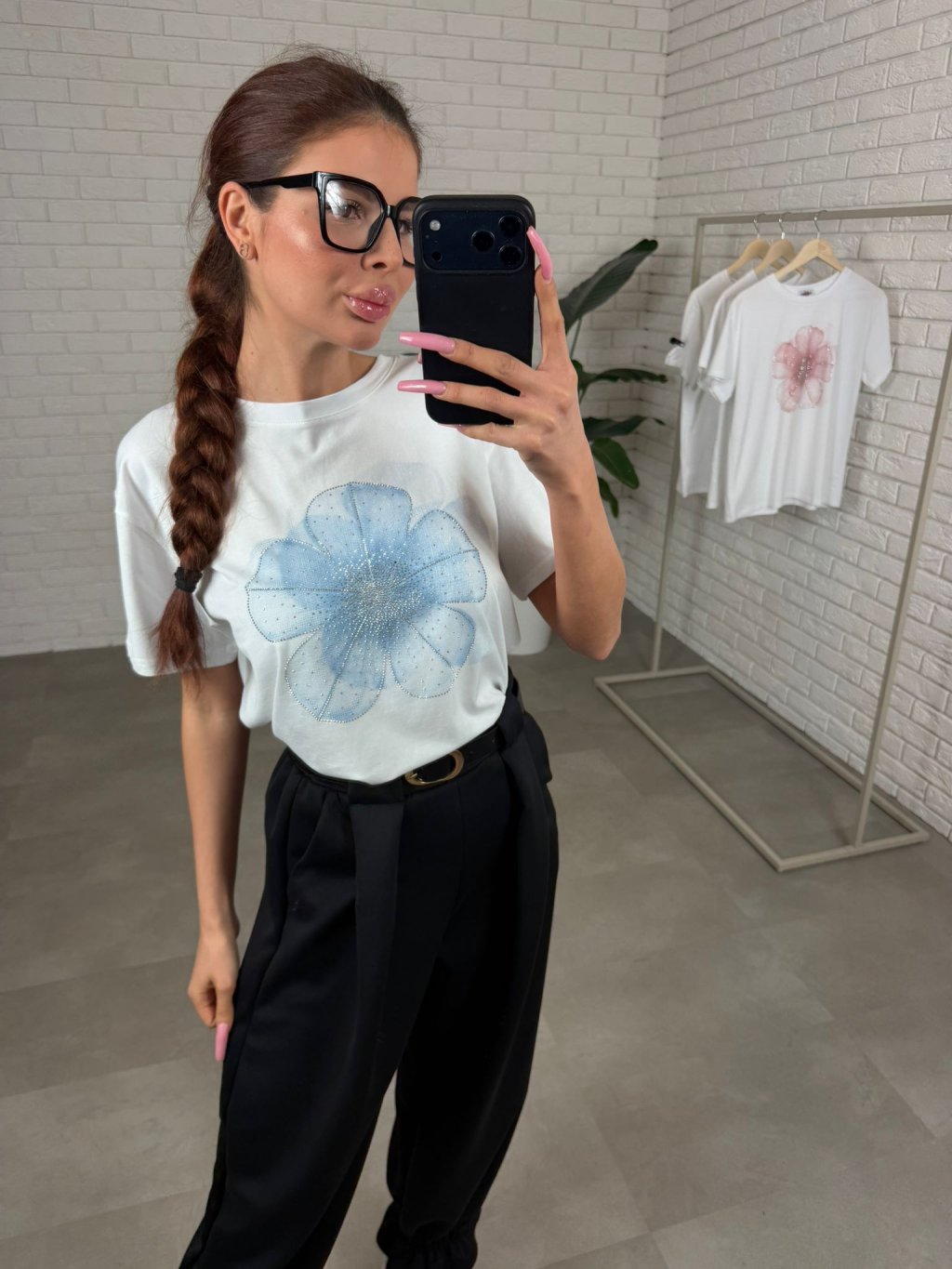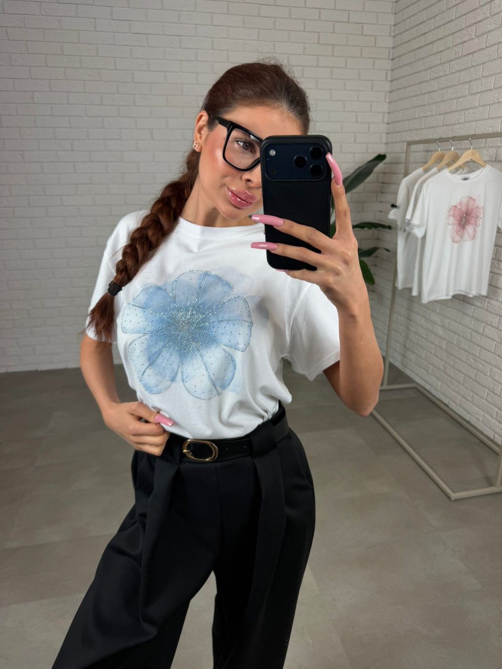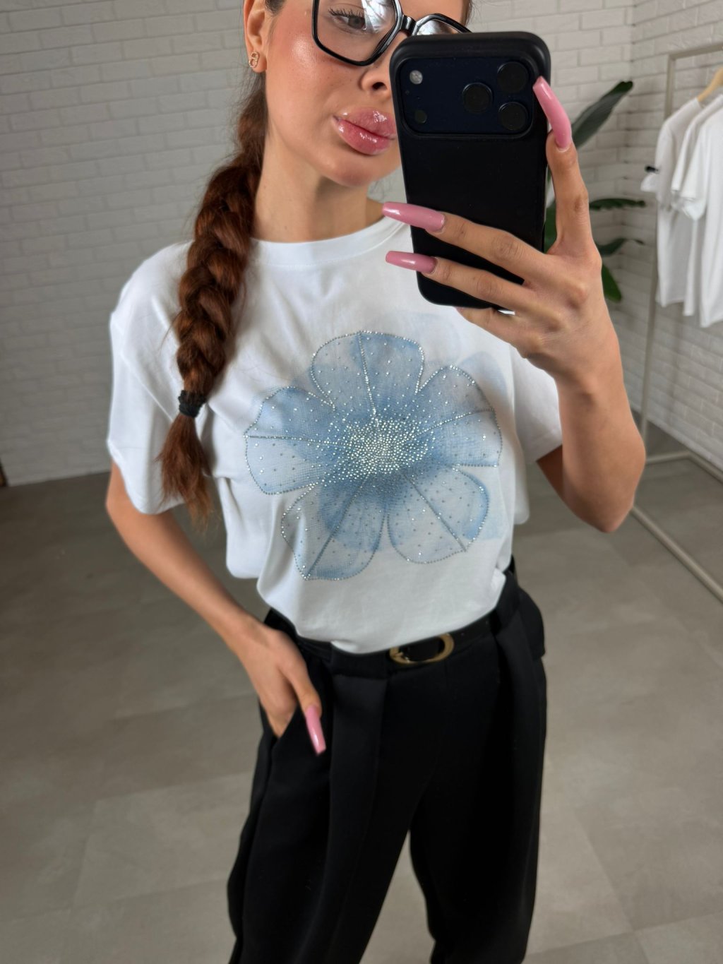 Tričko so štrasovým kvetom AGATA svetlomodré