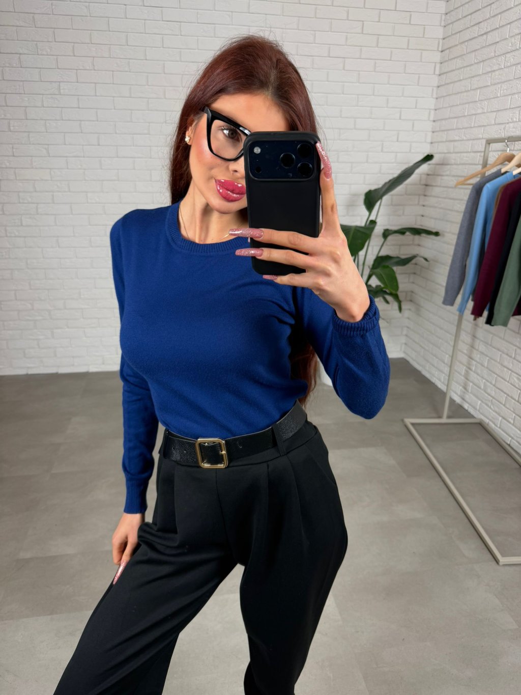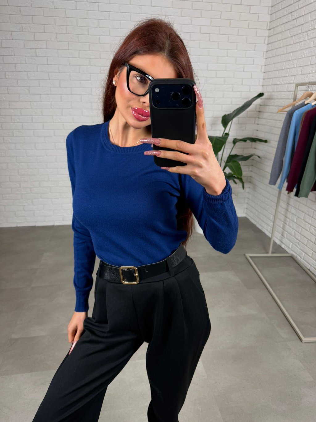 Úpletový top LOAN, je klasický elastický kúsok na bežné nosenie. Výstrih má guľatý a rukávy sú dlhé. Strih je voľnejší a ležérny. Sadne od XS po XL.