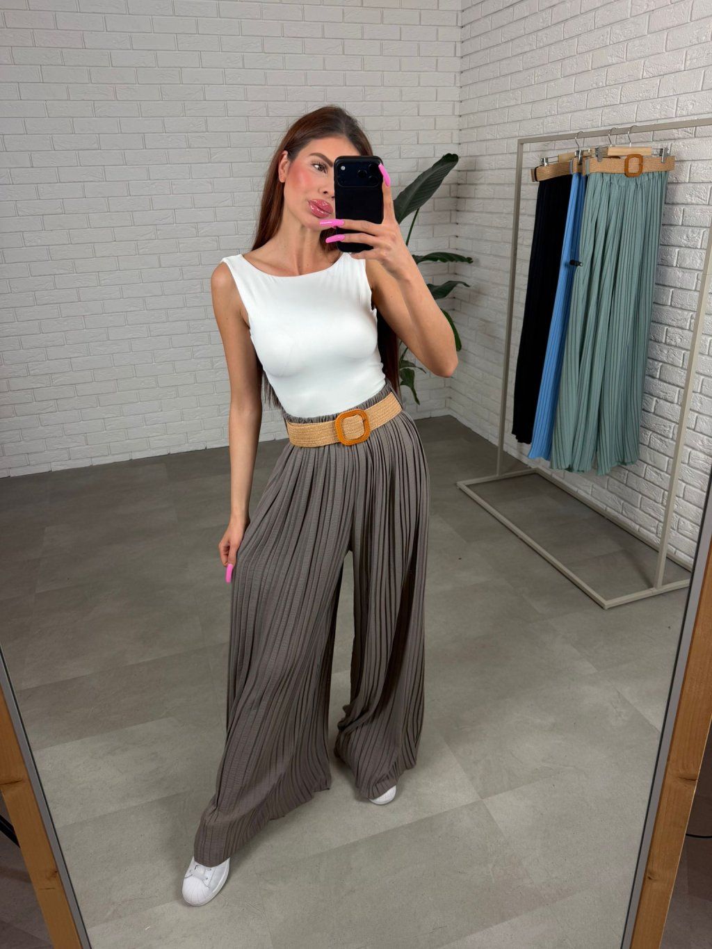 Materiál je príjemný, mierne ťažší a pekne padavý, takže nohavice prirodzene splývajú na postave a pôsobia upravene počas celého dňa. Elastický pás sa prispôsobí každej postave a poskytne komfort v oblasti bruška, pásu, bokov aj zadočku. Lanový opasok dotvára celkový vzhľad a dodáva nohaviciam jemný štýlový detail. Strih je navrhnutý tak, aby sadol rôznym typom postavy a pôsobil žensky a vyvážene. Nohavice TARINA veľkostne sadnú od S až po XXL.
