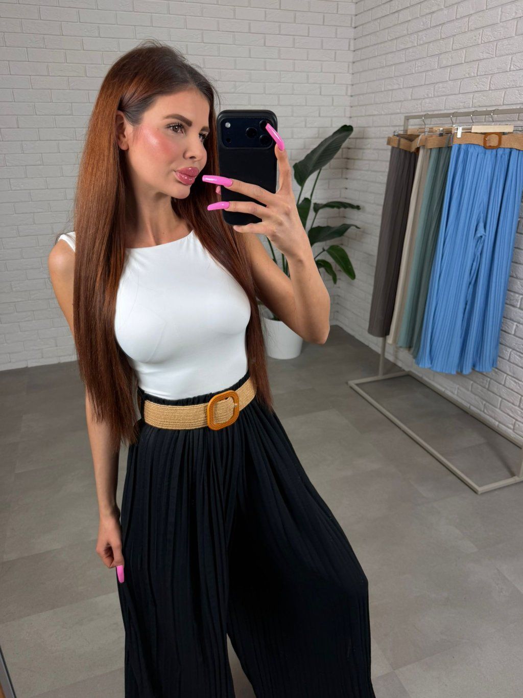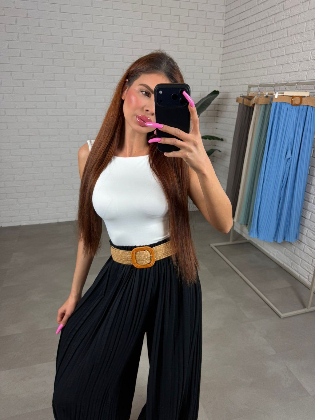Materiál je príjemný, mierne ťažší a pekne padavý, takže nohavice prirodzene splývajú na postave a pôsobia upravene počas celého dňa. Elastický pás sa prispôsobí každej postave a poskytne komfort v oblasti bruška, pásu, bokov aj zadočku. Lanový opasok dotvára celkový vzhľad a dodáva nohaviciam jemný štýlový detail. Strih je navrhnutý tak, aby sadol rôznym typom postavy a pôsobil žensky a vyvážene. Nohavice TARINA veľkostne sadnú od S až po XXL.