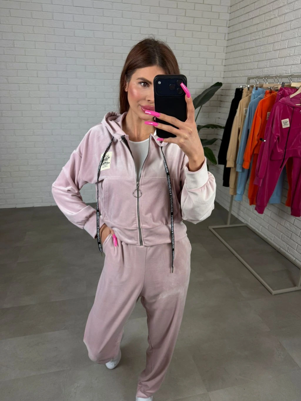 Zamatová súprava NOEL je štýlový a pohodlný komplet, ktorý pôsobí moderne a zároveň veľmi príjemne na nosenie. Mäkký zamatový materiál je jemný na dotyk a dodáva celému outfitu luxusný, no stále ležérny vzhľad.